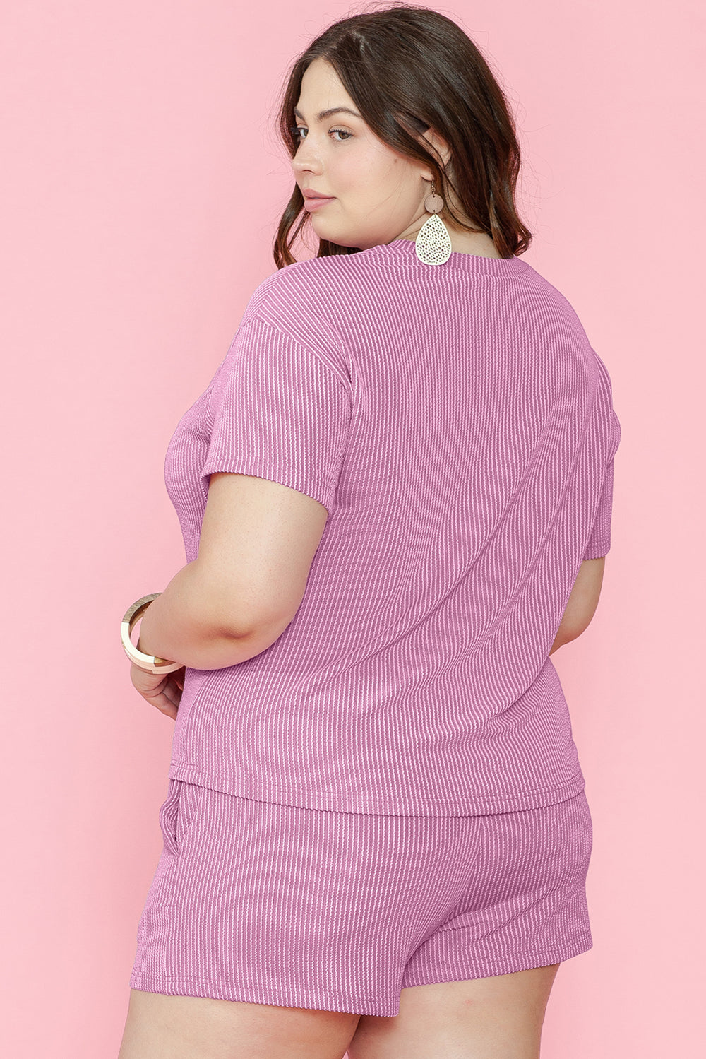 Phalaenopsis Ribbed Knit T Shirt and Shorts Plus Size Lounge Set
