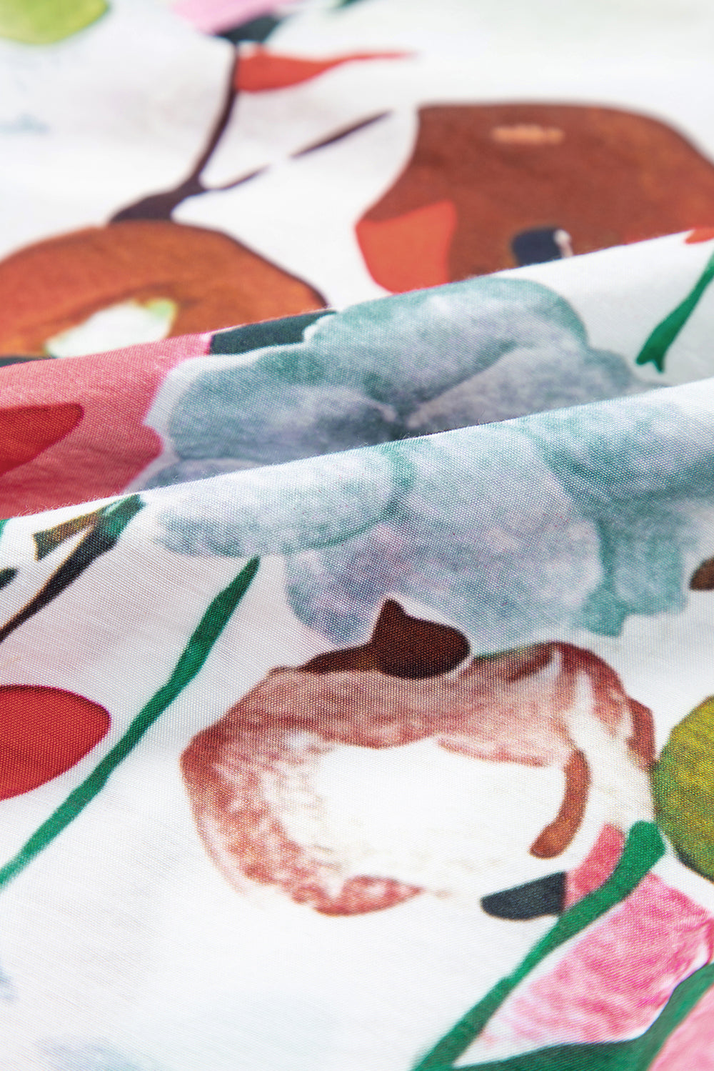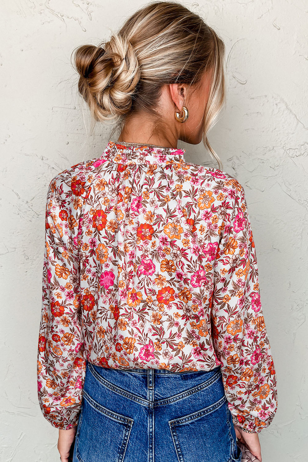 Pink Floral Print Patchwork Frilly Neckline Long Sleeve Shirt