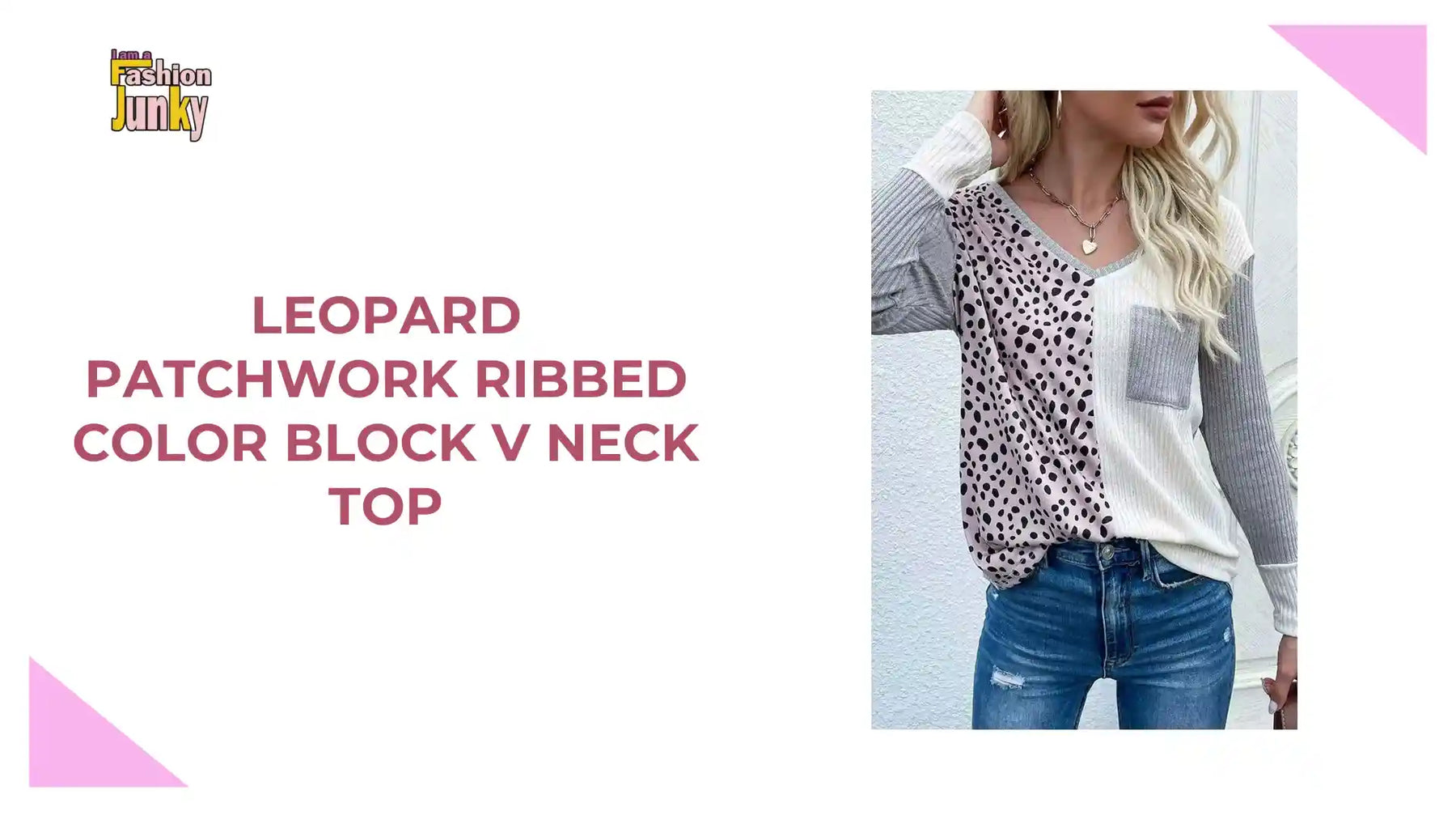 Leopard Patchwork Ribbed Color Block V Neck Top by@Outfy