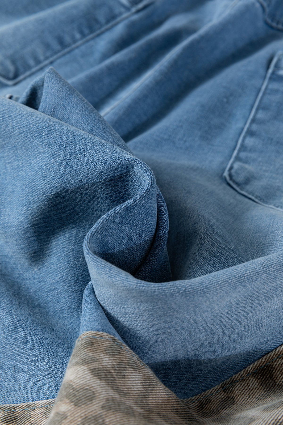 Stay cool and on trend in these denim trousers. The wide leg jeans have a drawstring elastic waist. Acid-washed denim with leopard patchwork at the sides. These jeans are made to make a statement for daily styling.