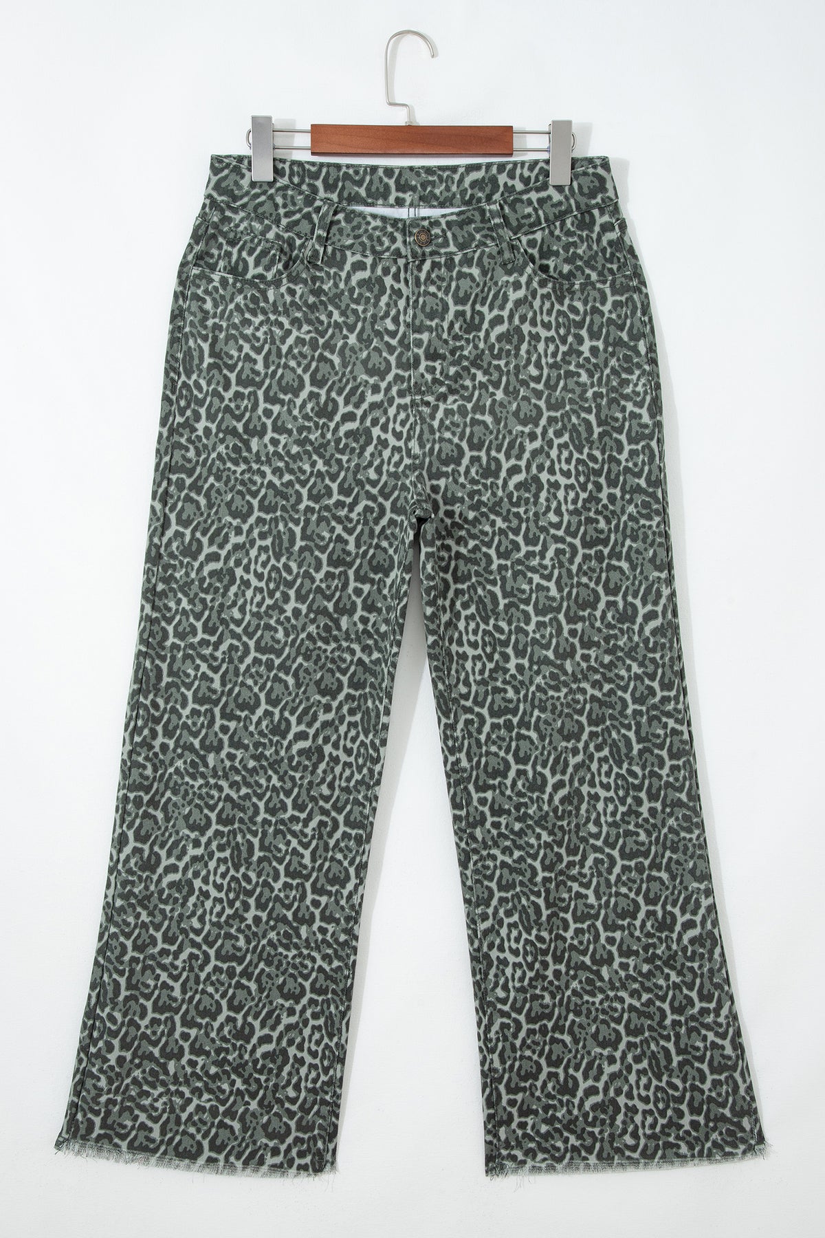 Distinctive leopard print adds a trendy and wild touch to your outfit. High waist design accentuates your curves while providing a comfortable fit. Wide-leg style offers a modern and fashionable silhouette. Frayed edges give a stylishly distressed look for an edgy vibe.