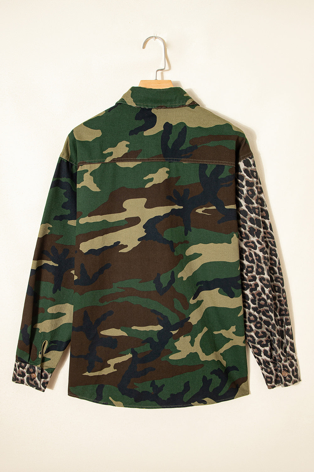 Brown Leopard Star Hooded Patchwork Contrast Piping Open Front Jacket