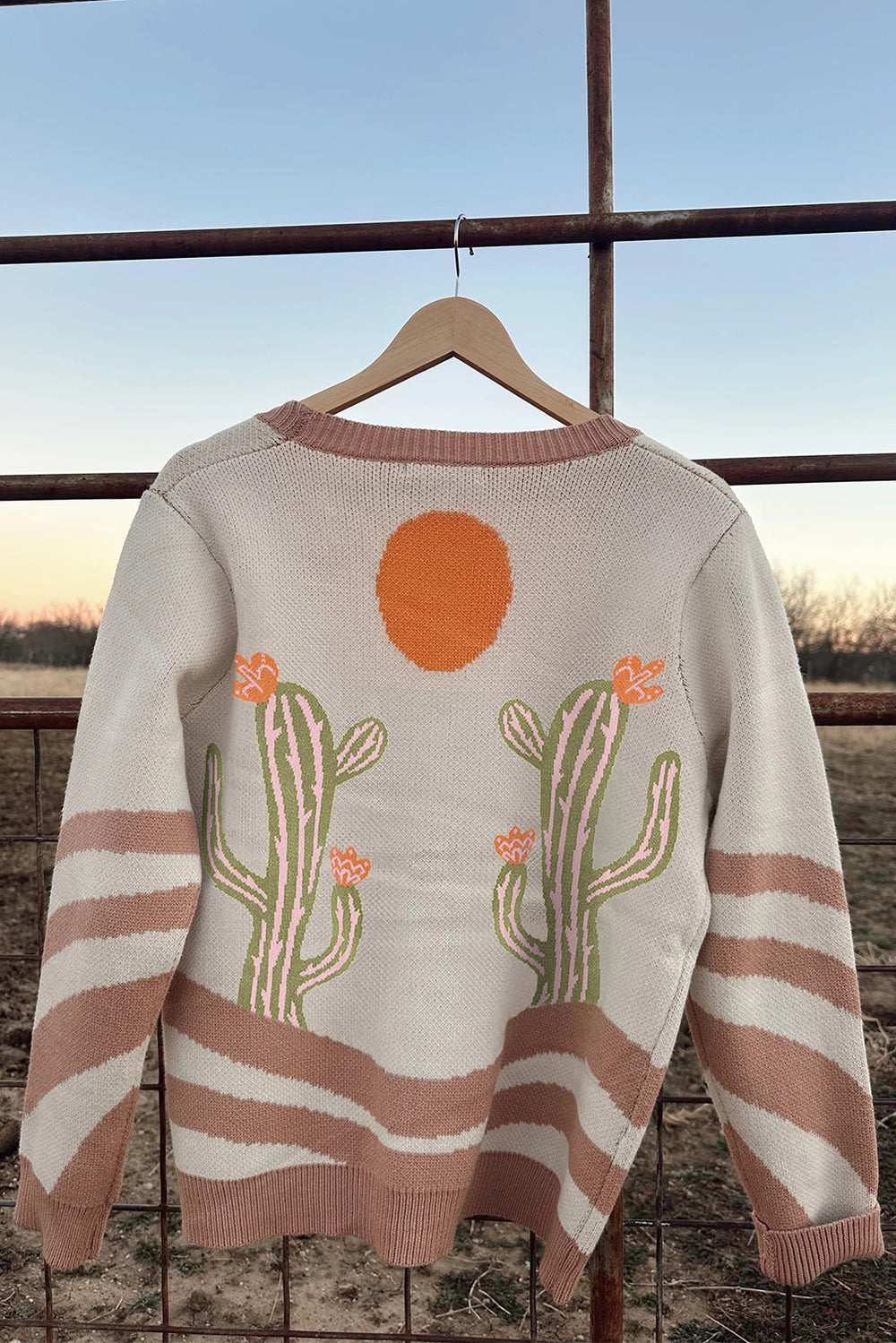 Apricot Western Desert Cactus Print Plus Size Button Cardigan Sweater