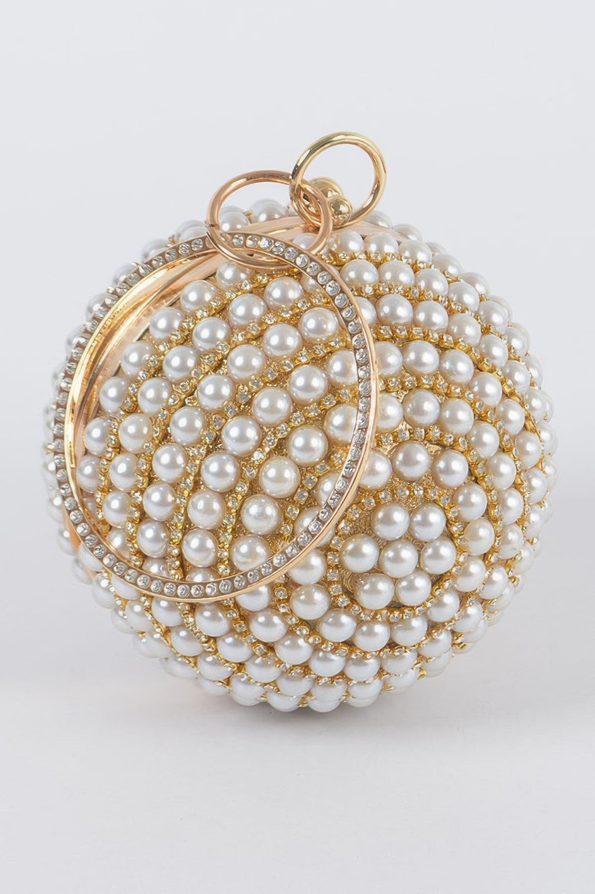 Add timeless glamour to your ensemble with the Pearl Ball Clutch. Featuring a perfectly rounded shape adorned with lustrous faux pearls, this statement accessory brings elegance to any formal occasion. The gold-tone chain strap enhances its luxurious appeal while offering versatile styling options. Compact yet eye-catching, this clutch is ideal for evening events, weddings, or special celebrations. Carry sophistication in the palm of your hand.