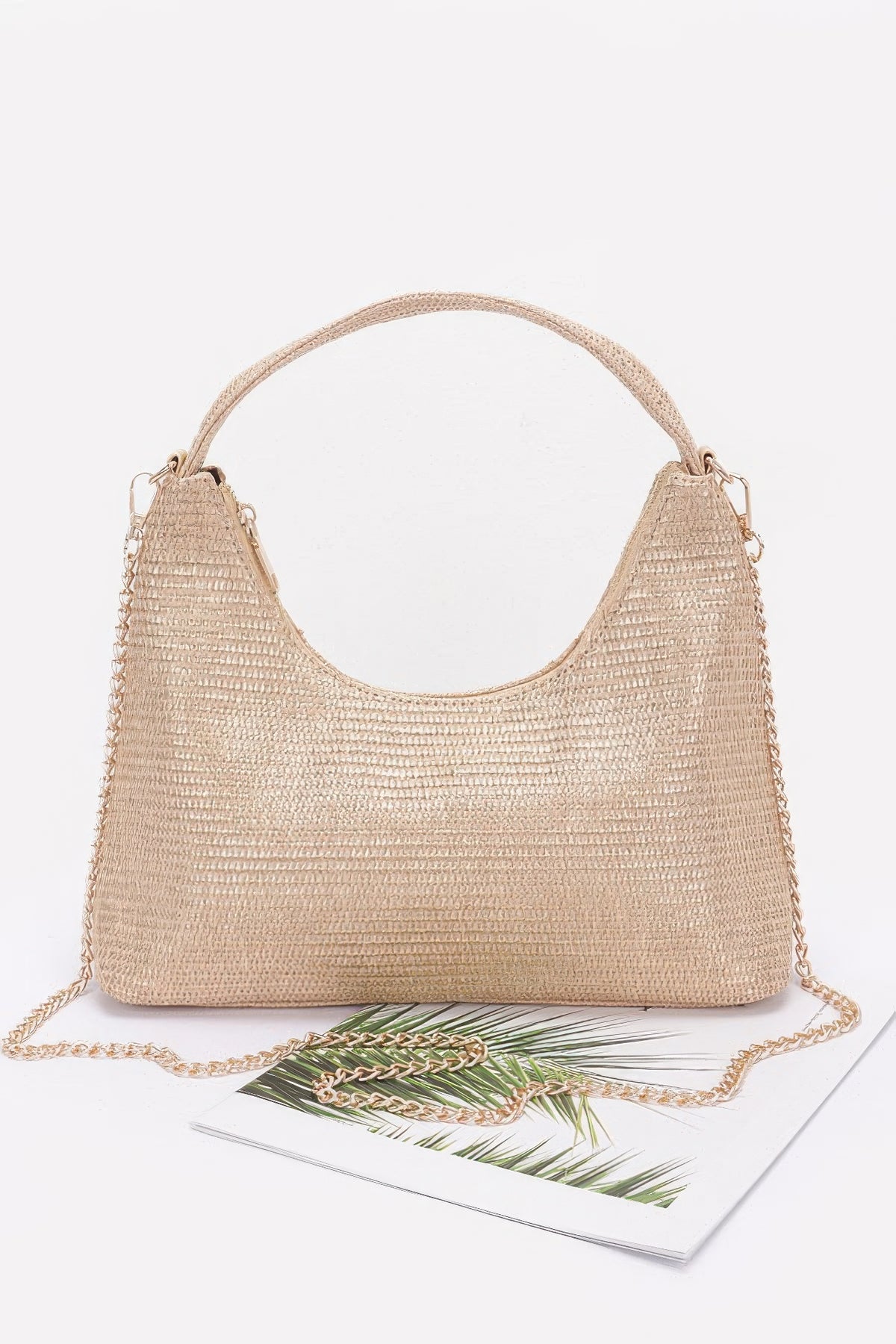 Why Choose Metallic Faux Straw Hobo Bag This bag effortlessly combines the best of both worlds—luxury and practicality. Its spacious design, coupled with the metallic faux straw look, makes it a versatile accessory that can elevate any outfit, whether you're dressing up or down.