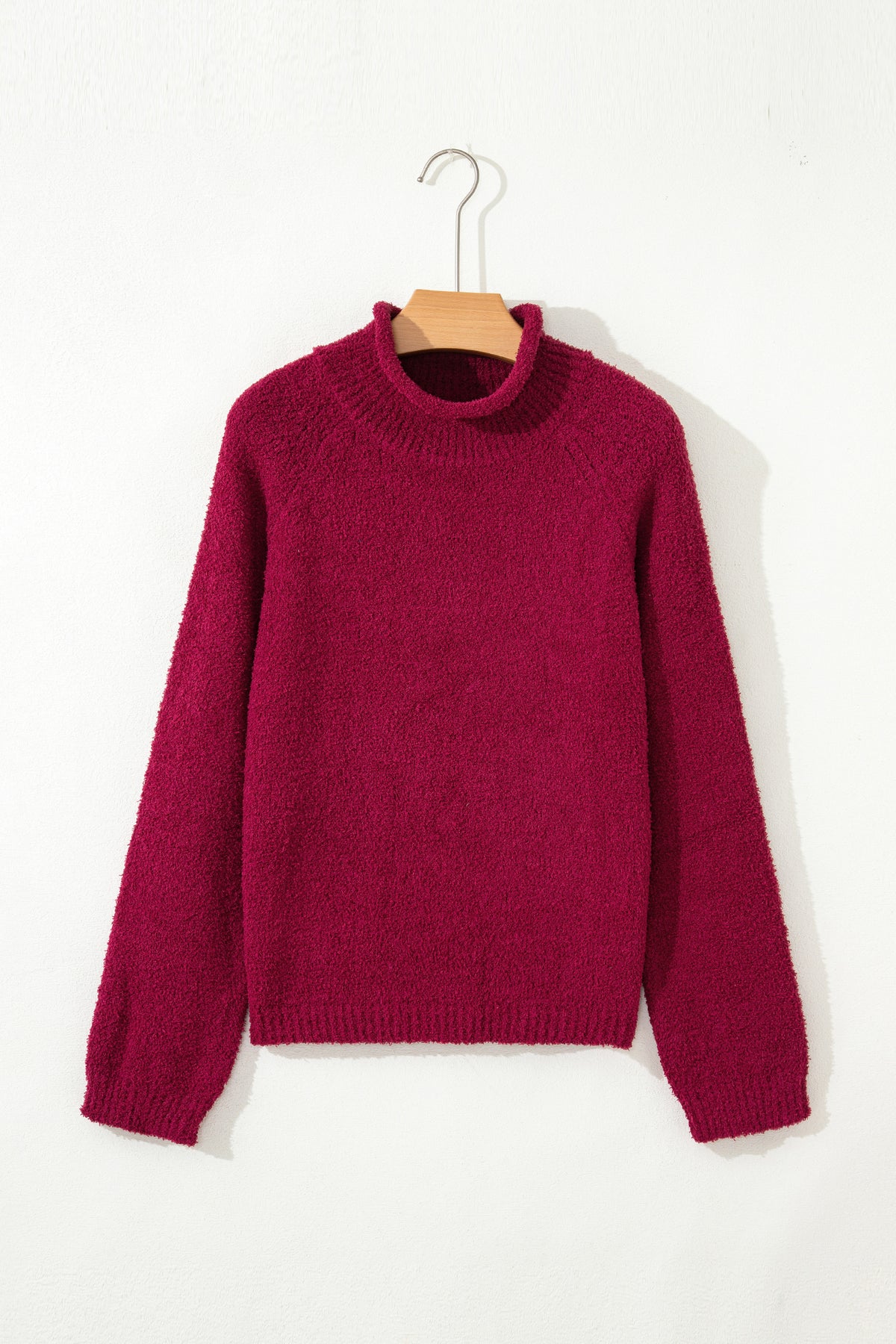 Burgundy Popcorn Mock Neck Solid Sweater