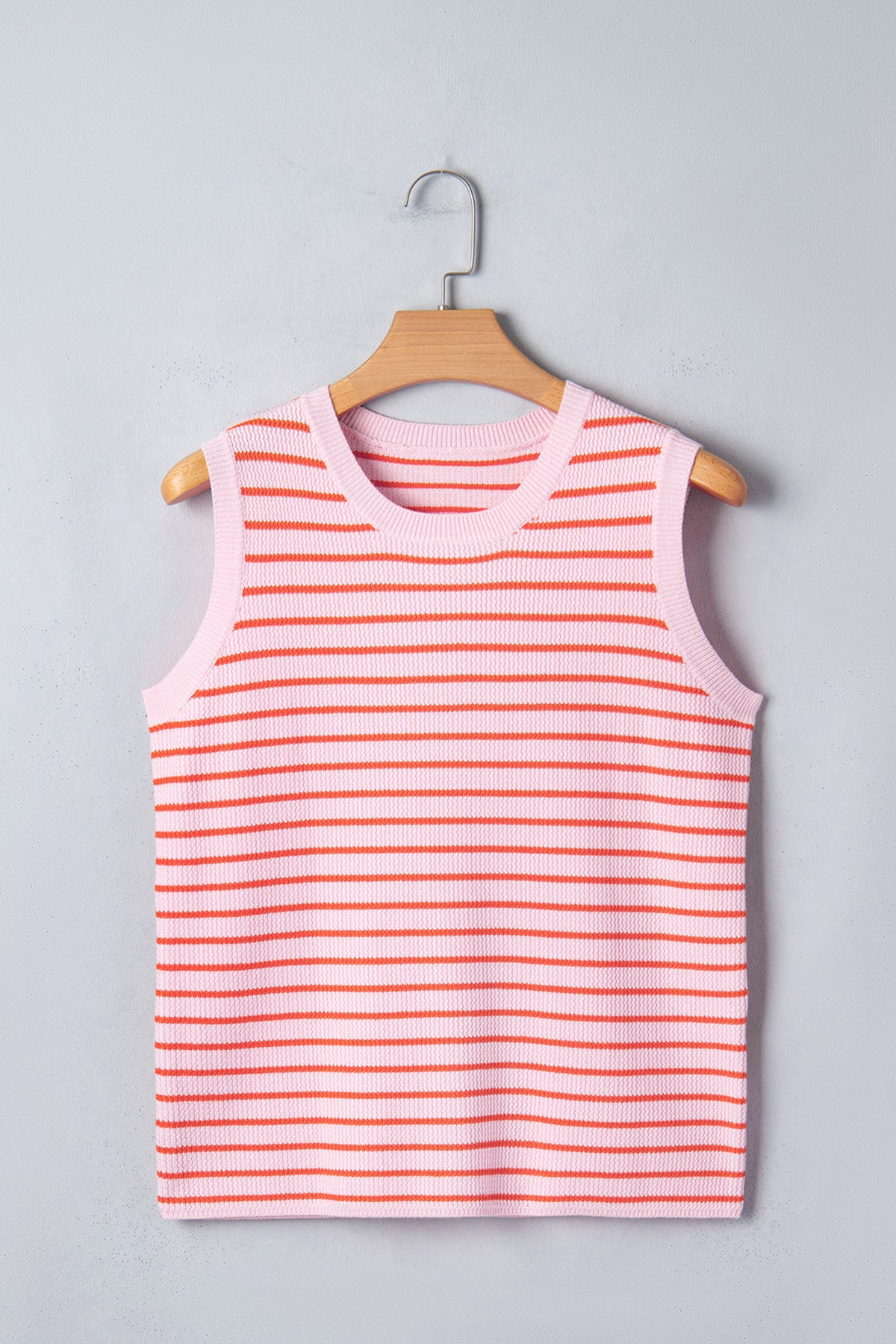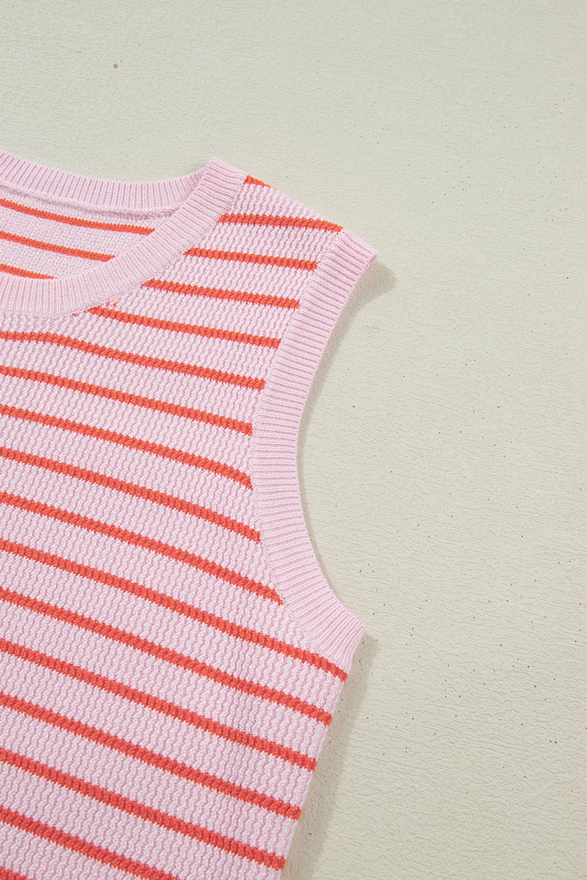 Pink Stripe Textured Knit Sleeveless Casual Sweater Top