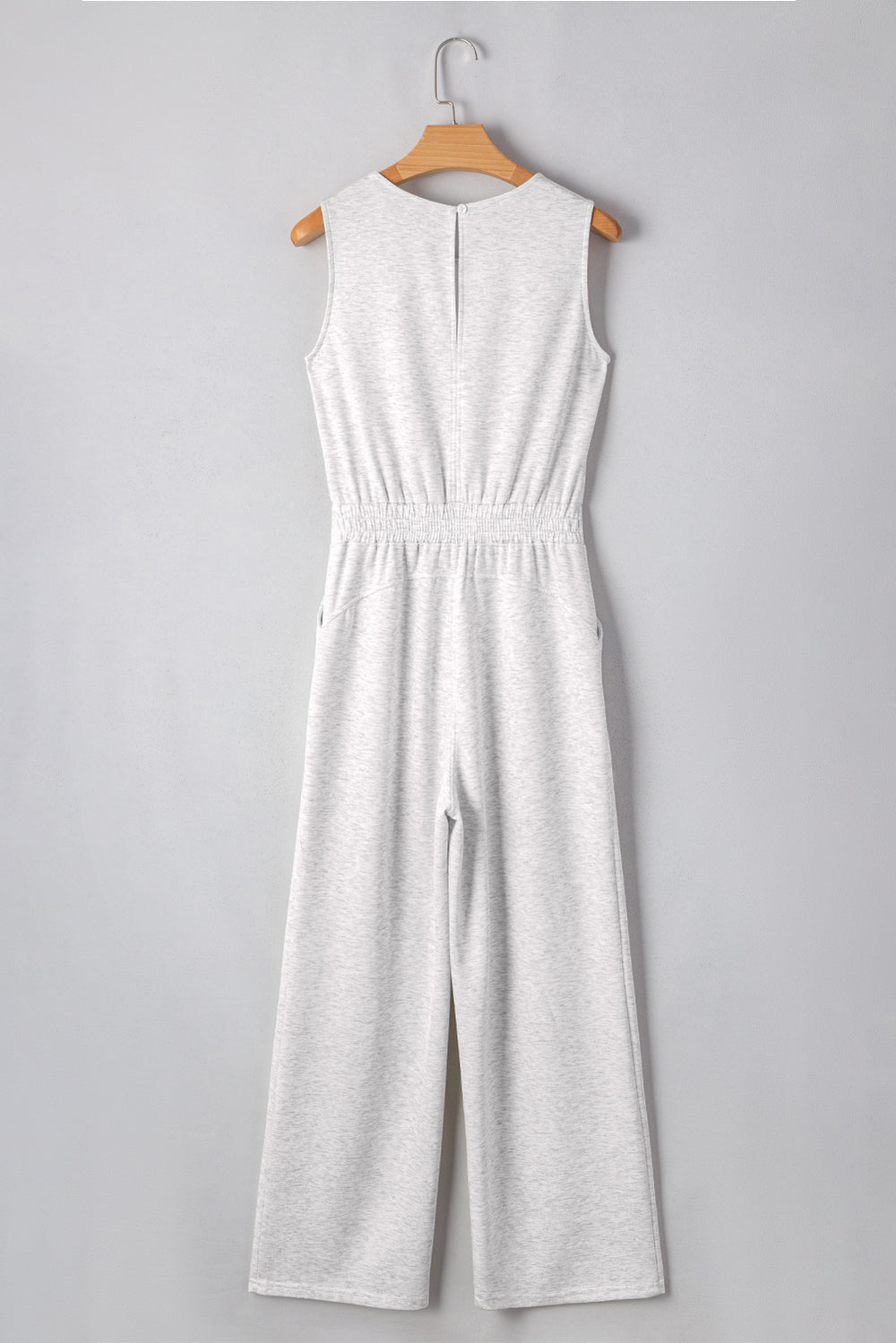 Light Grey Solid Color Crew Neck Drawstring High Waist Sleeveless Jumpsuit