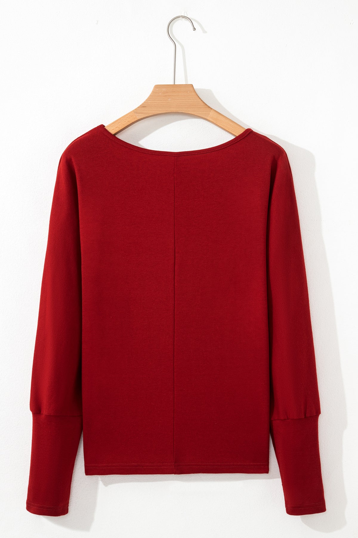 Red Dahlia Solid Color Extended Cuffs Long Sleeve Top