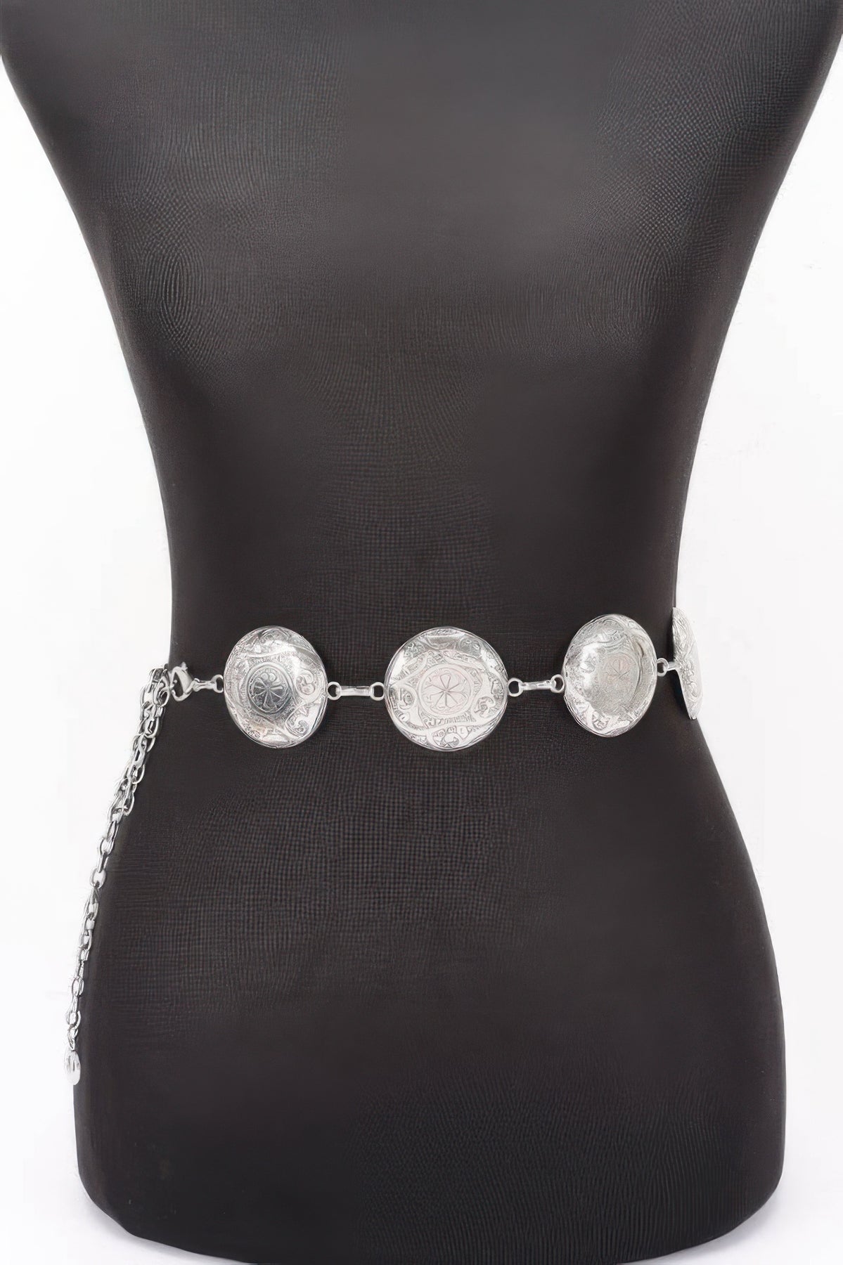 Bring retro elegance to your ensemble with the Vintage Metal Chain Belt. This design features ornate metal discs connected by a flowing chain structure, capturing a timeless bohemian aesthetic. Measuring 2" in width and 45" in length, it adds dramatic texture while comfortably cinching the waist. Whether worn with flowing maxi dresses or tailored trousers, it offers a vintage-inspired accent that’s both bold and chic. Ideal for themed parties or daily statement dressing.