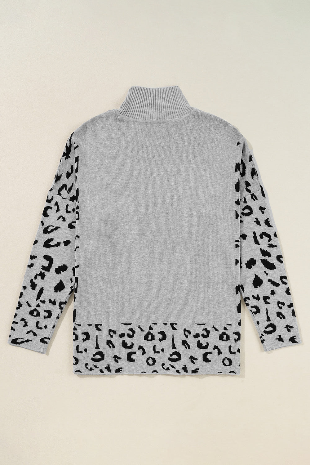 Gray Leopard High Neck Side Slit Oversized Sweater