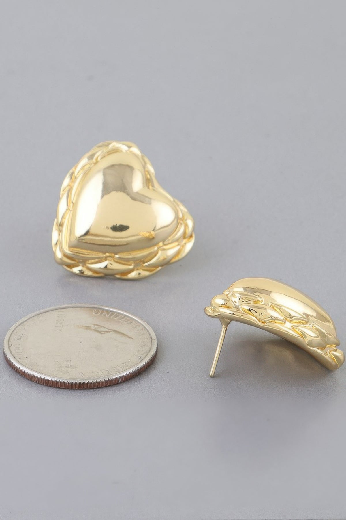 Sweeten your look with a touch of shine in these gold-dipped braided heart stud earrings. Featuring a bold heart shape with a polished finish and intricately braided border, these earrings strike the perfect balance between romantic and statement-making. Crafted with sterling silver posts for sensitive ears, they offer both style and comfort. Whether paired with casual looks or dressed-up ensembles, these heart studs add a glowing finish to any outfit.