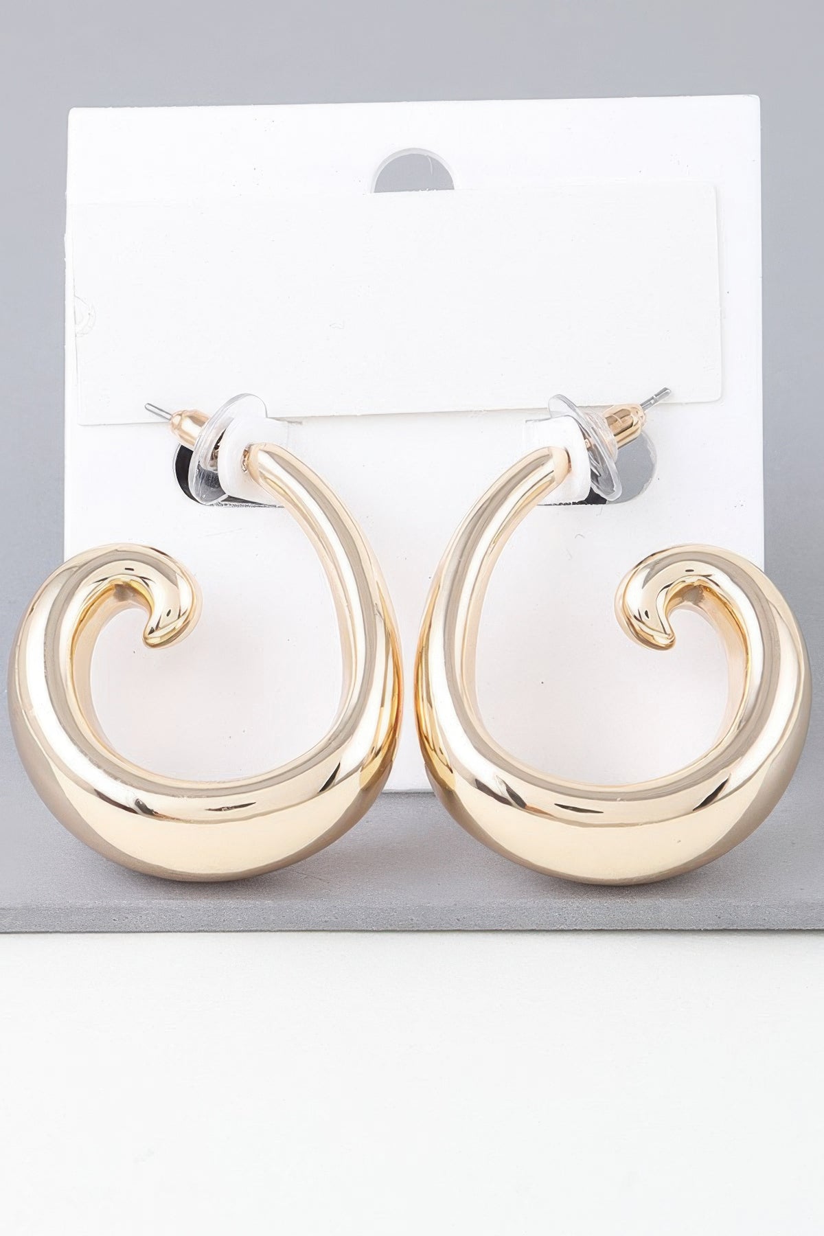 Quality Craftsmanship: Made with precision, the Shiny Wave Curl Hoop Earrings maintain their polished gold finish and sculptural design over time.