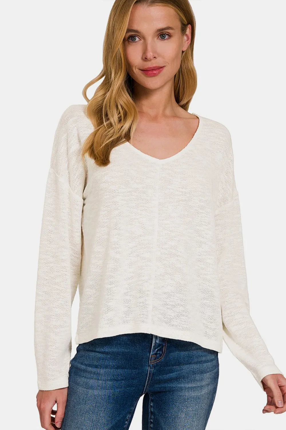 Zenana V-Neck Dropped Shoulder Long Sleeve T-Shirt