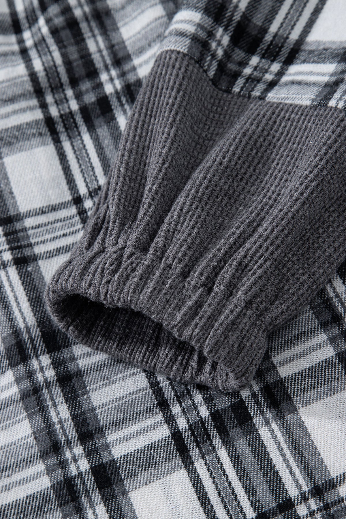 The waffle patchwork makes this plaid blouse not so dull.