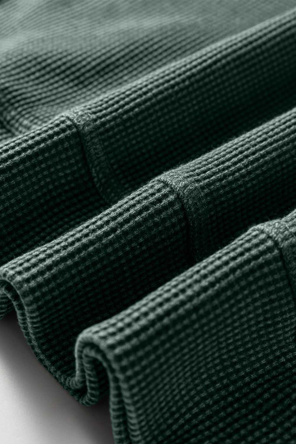 Cozy waffle knit texture offers breathable comfort for everyday wear. Stylish patchwork design adds a unique and romantic detail. Loose fit silhouette ensures a relaxed and flattering look for all body types. Perfect for layering in transitional seasons and worn solo for casual outings.