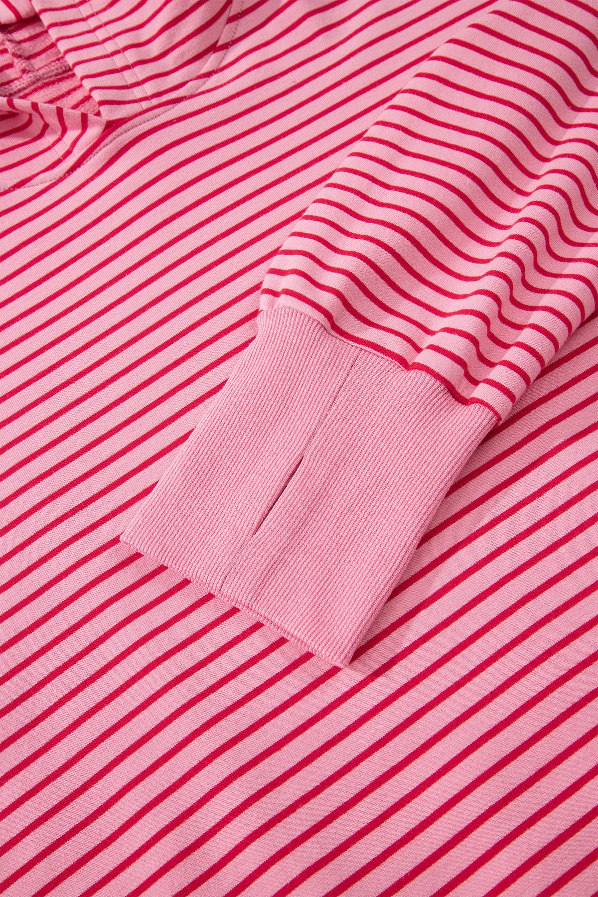 Rose Stripe Thumbhole Side Slits Drop Shoulder Loose Fit Hoodie