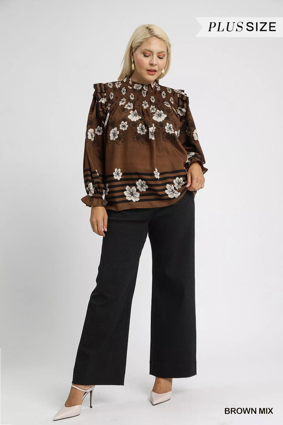 Umgee Full Size Mix Floral Smocked Ruffle Blouse Plus Size by@Outfy