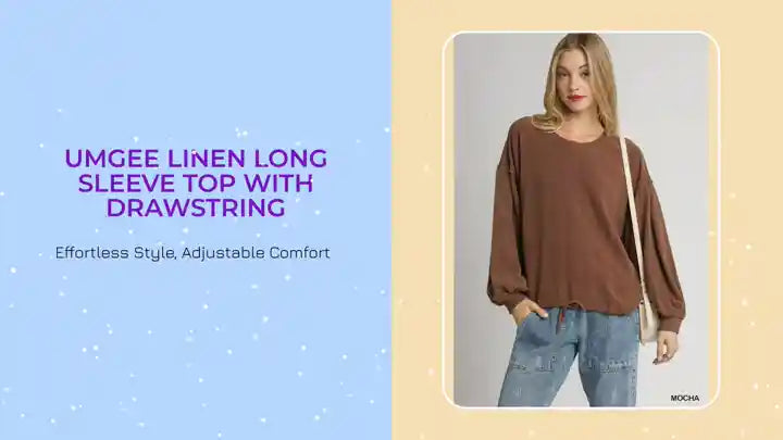 This linen long sleeve top features a trendy drawstring detail that allows for adjustable styling and a personalized fit. The lightweight and breathable linen fabric make it ideal for warm weather and layering. The long sleeves provide coverage while still keeping you cool and comfortable. Perfect for both casual and dressed-up looks, this top adds a touch of sophistication to any outfit. Elevate your wardrobe with this versatile and chic piece.