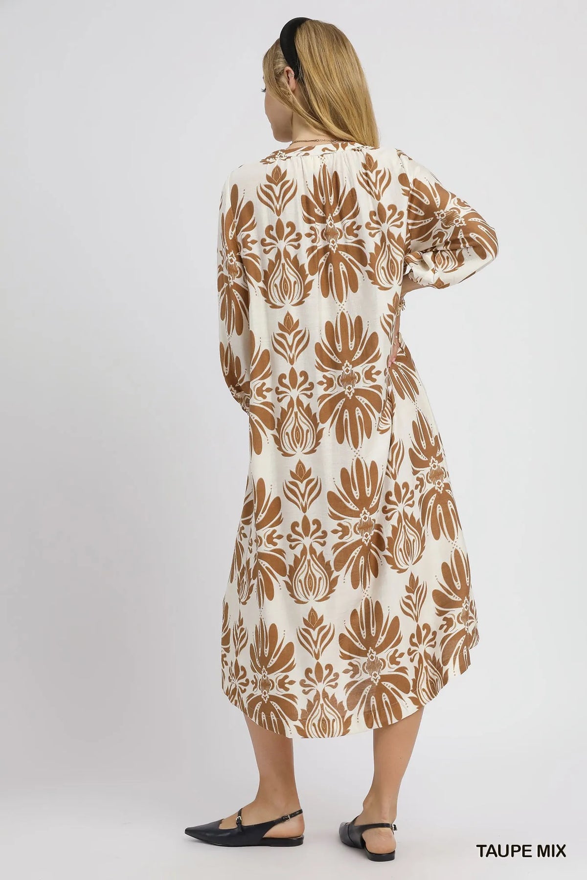 Umgee Mix Abstract Floral Print Midi Dress