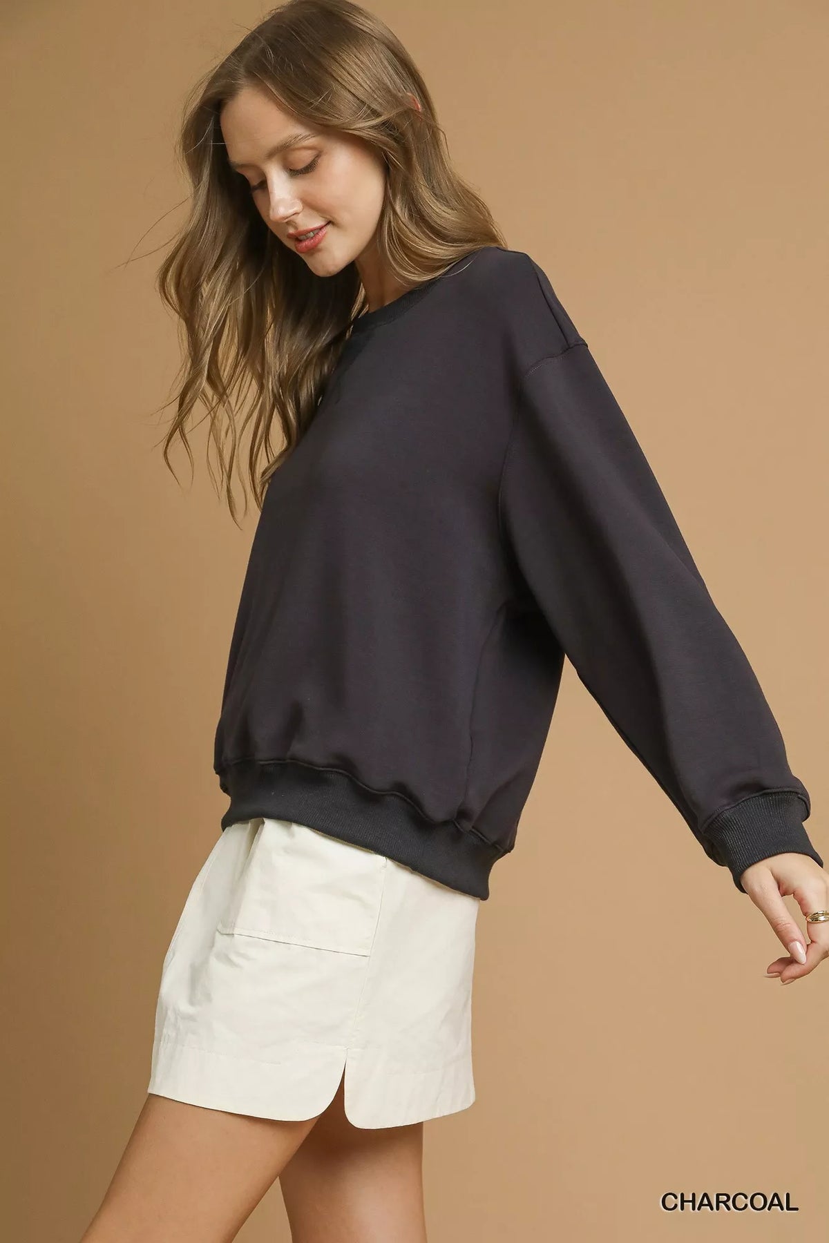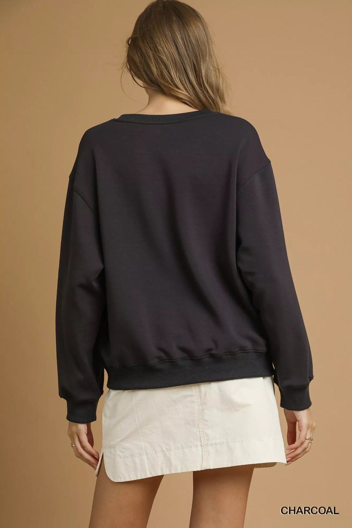 Umgee Round Neck Long Sleeve Fleece Sweatshirt