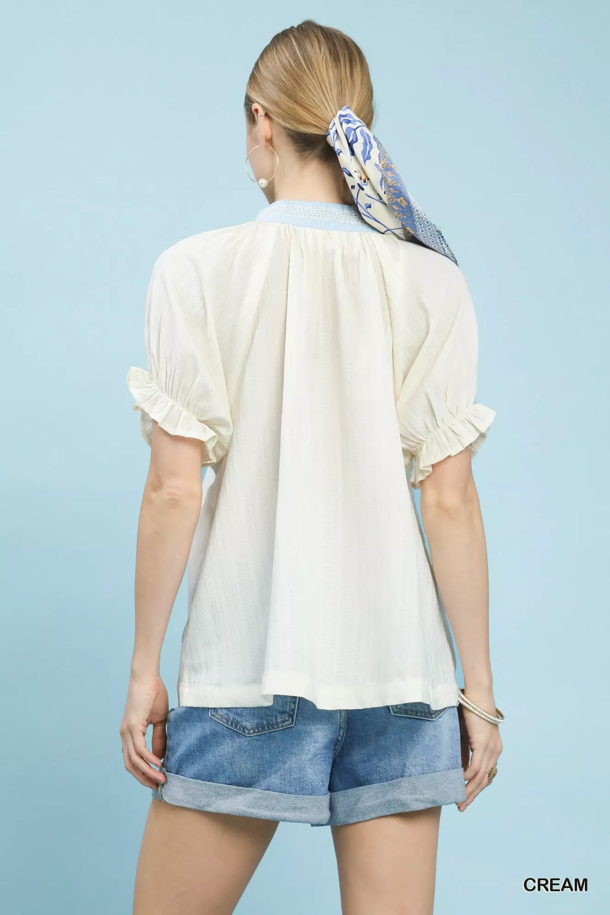 The Textured Solid V-Neck Top features key elements such as a flattering V-neck design and delicate lace trim details, adding a touch of elegance to your outfit. The short puff sleeves offer a feminine and playful look, perfect for the warmer seasons. This top is not lined, making it lightweight and breathable for all-day comfort. Pair it with your favorite bottoms for a stylish and chic ensemble that can take you from day to night effortlessly. Elevate your wardrobe with this versatile top that combines classic sophistication with modern trends.