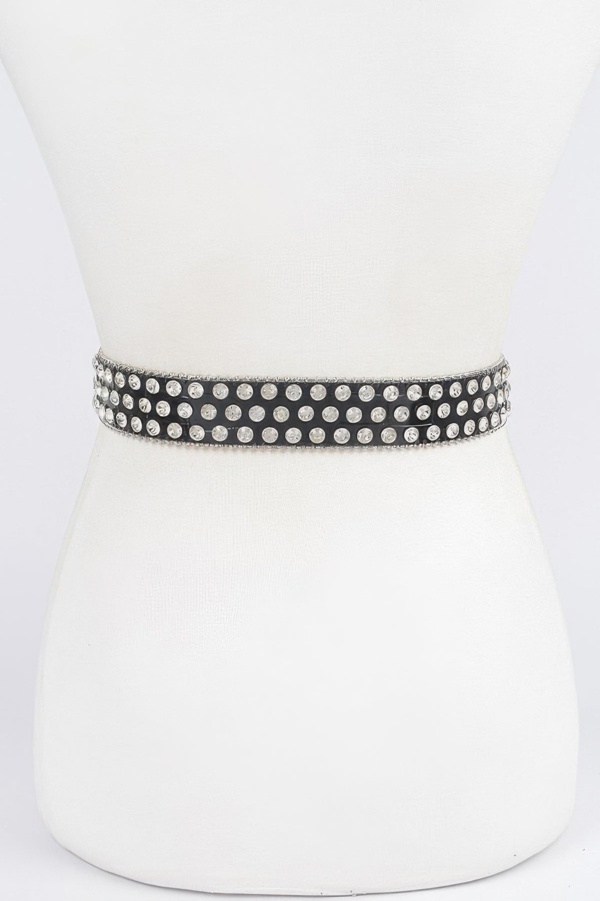 Embellished with silver studs and rhinestone buckle