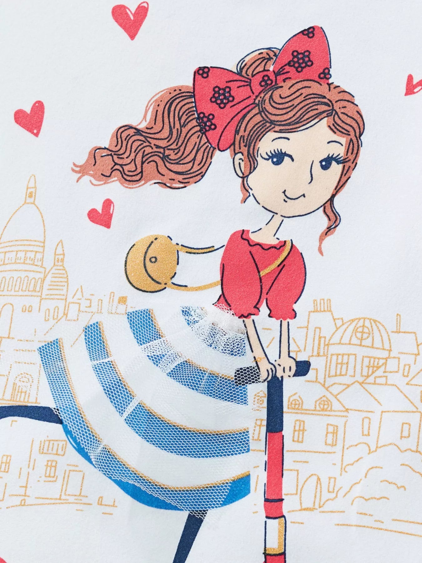 Children's Girl Scooter Graphic Ruffle Sleeve T-Shirt