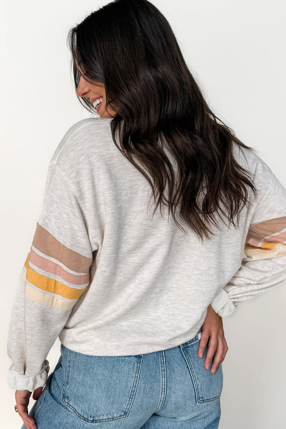 Light Grey Multicolored Striped Patchwork Drop Shoulder Sweatshirt