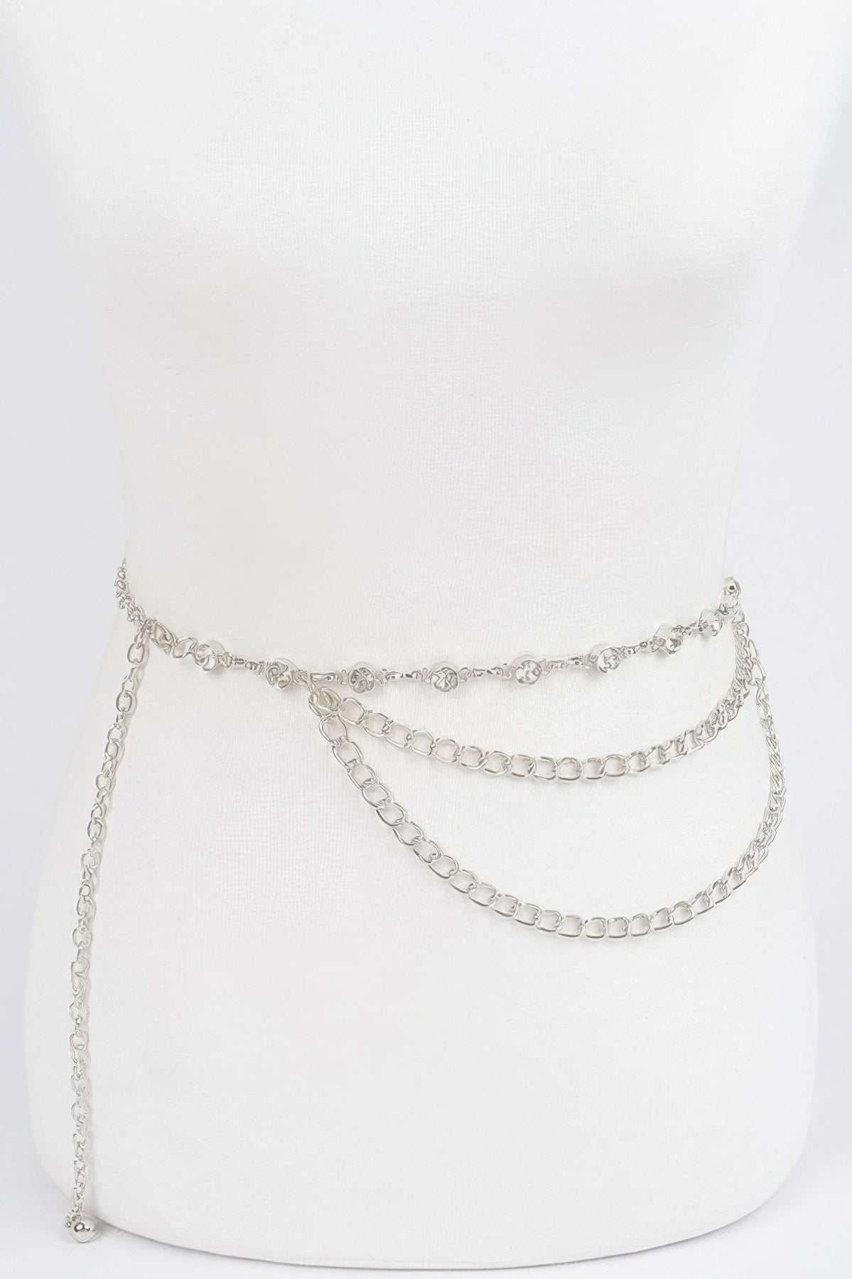 The Stone Chain Layered Belt is designed to elevate your outfit with a mix of sparkle and edge. Crafted from rhinestone and iron materials, it delivers a layered chain look that catches the light and enhances your waistline. Whether paired with a sleek dress or styled over a casual ensemble, this belt adds instant glamour. Measuring approximately 1" in width and 44.5" in length, it offers a flattering fit that adjusts with ease. It’s a versatile accessory perfect for nights out, events, or bold everyday looks.