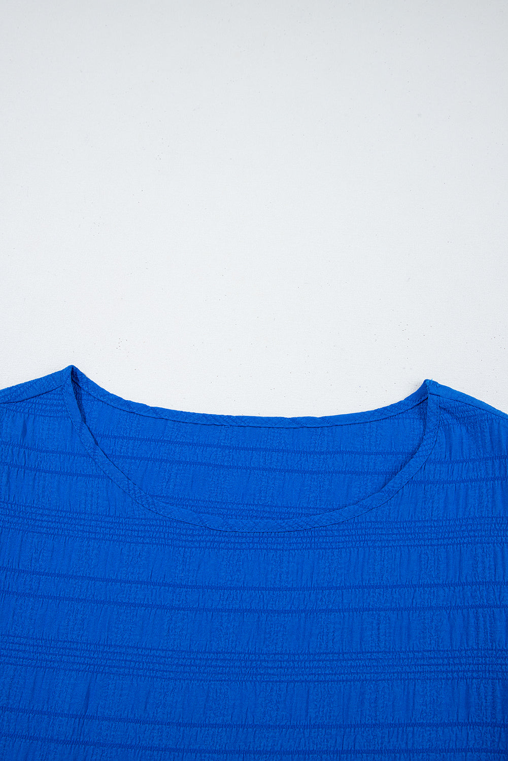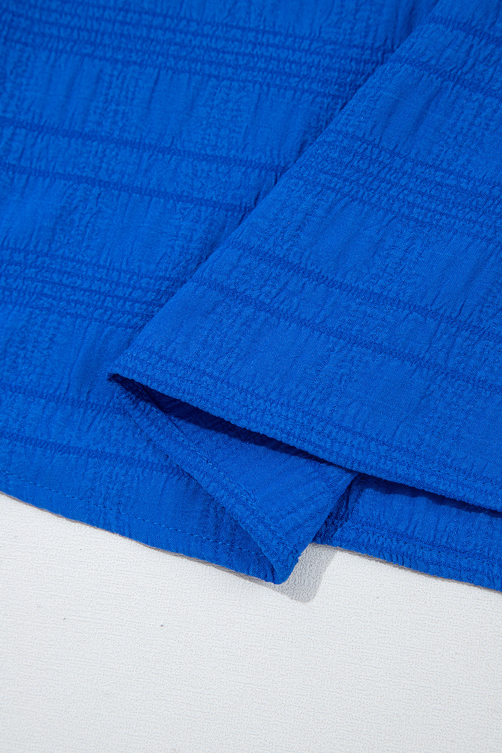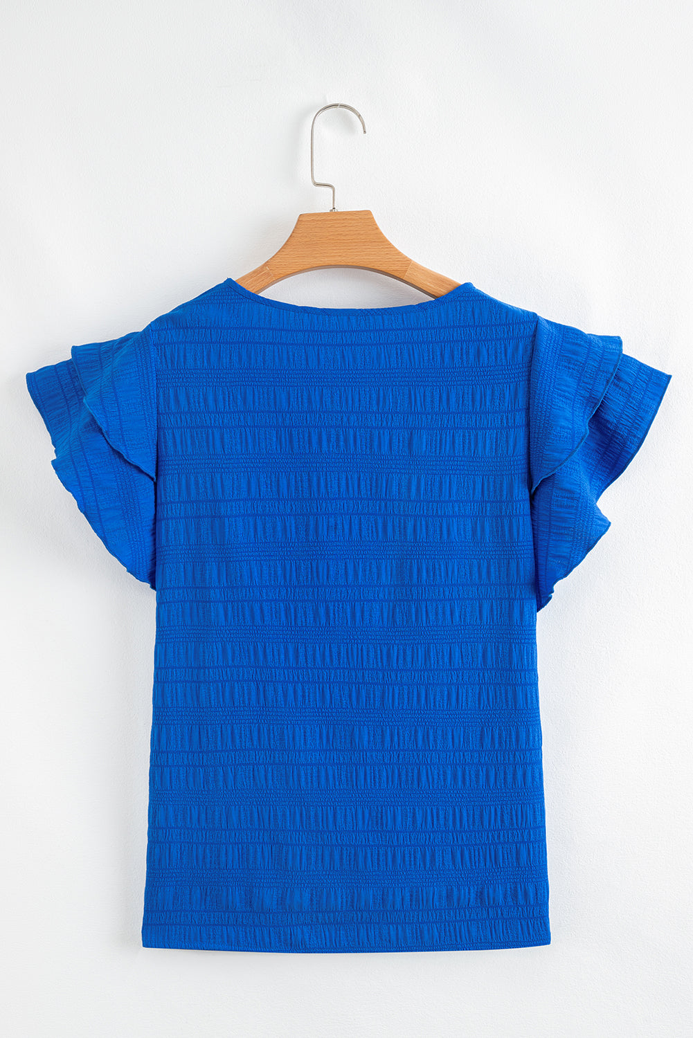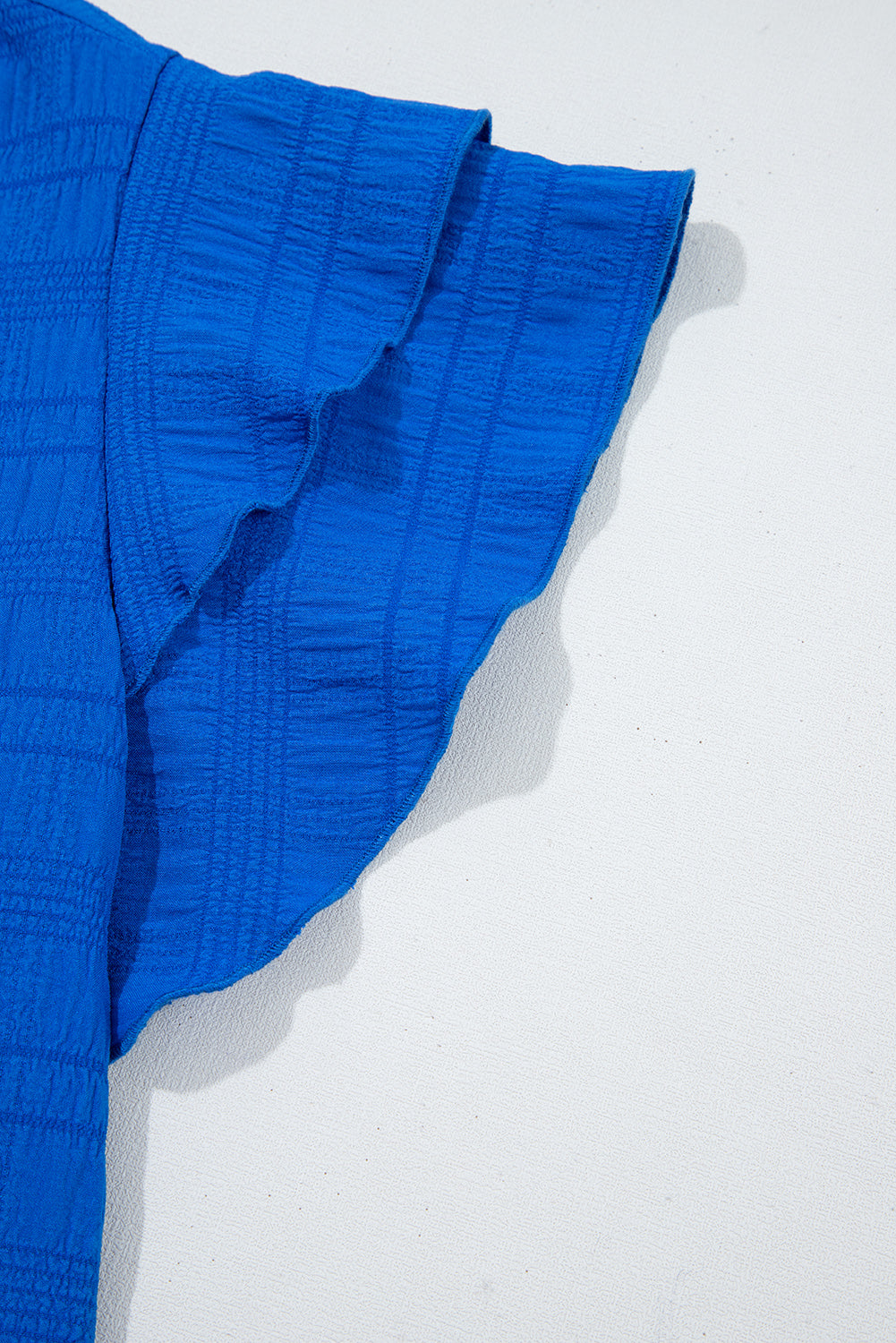 Dark Green Ruffle Sleeve Textured Smocked Blouse