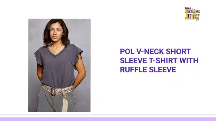 POL V-Neck Short Sleeve T-Shirt with Ruffle Sleeve