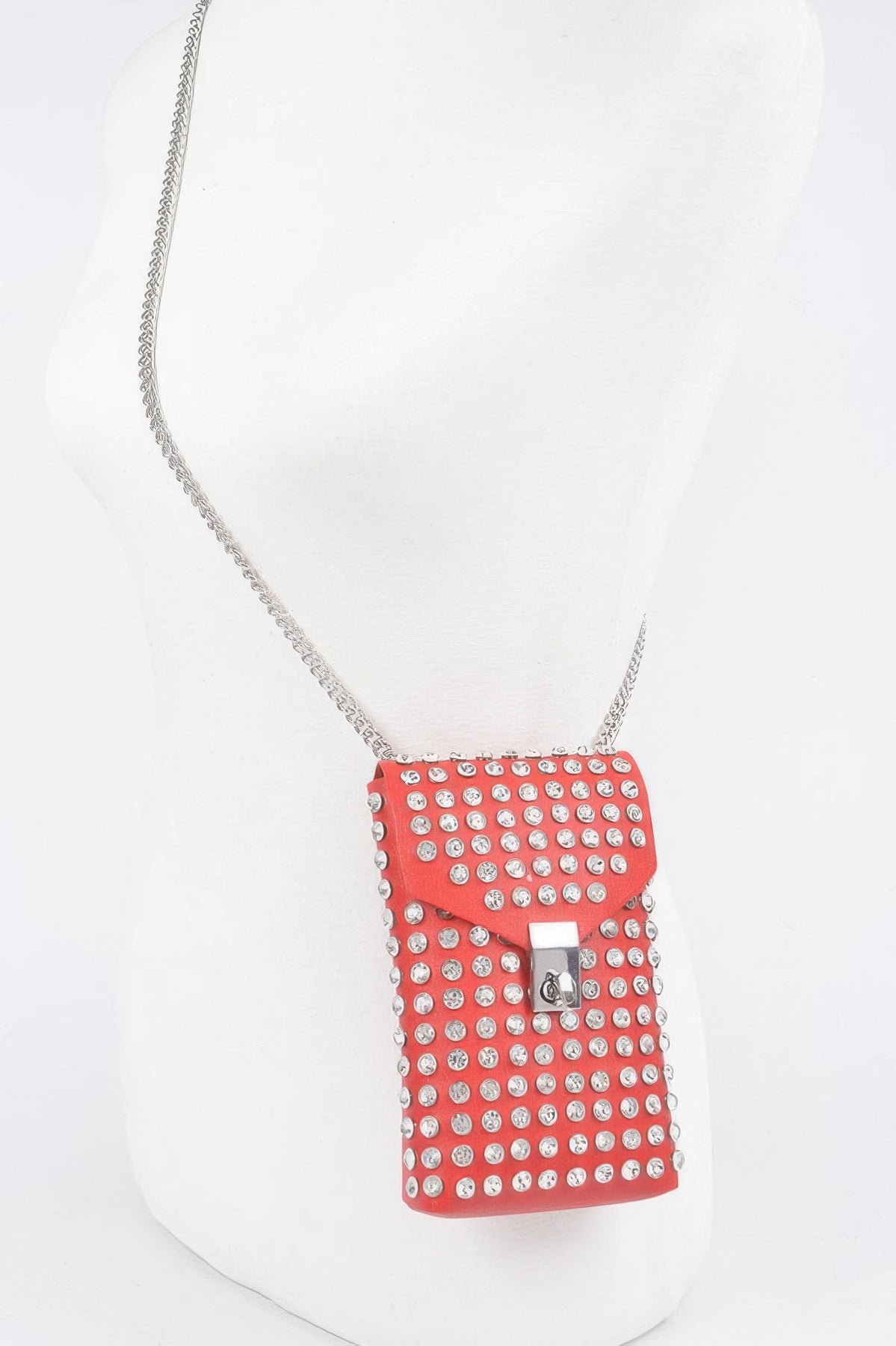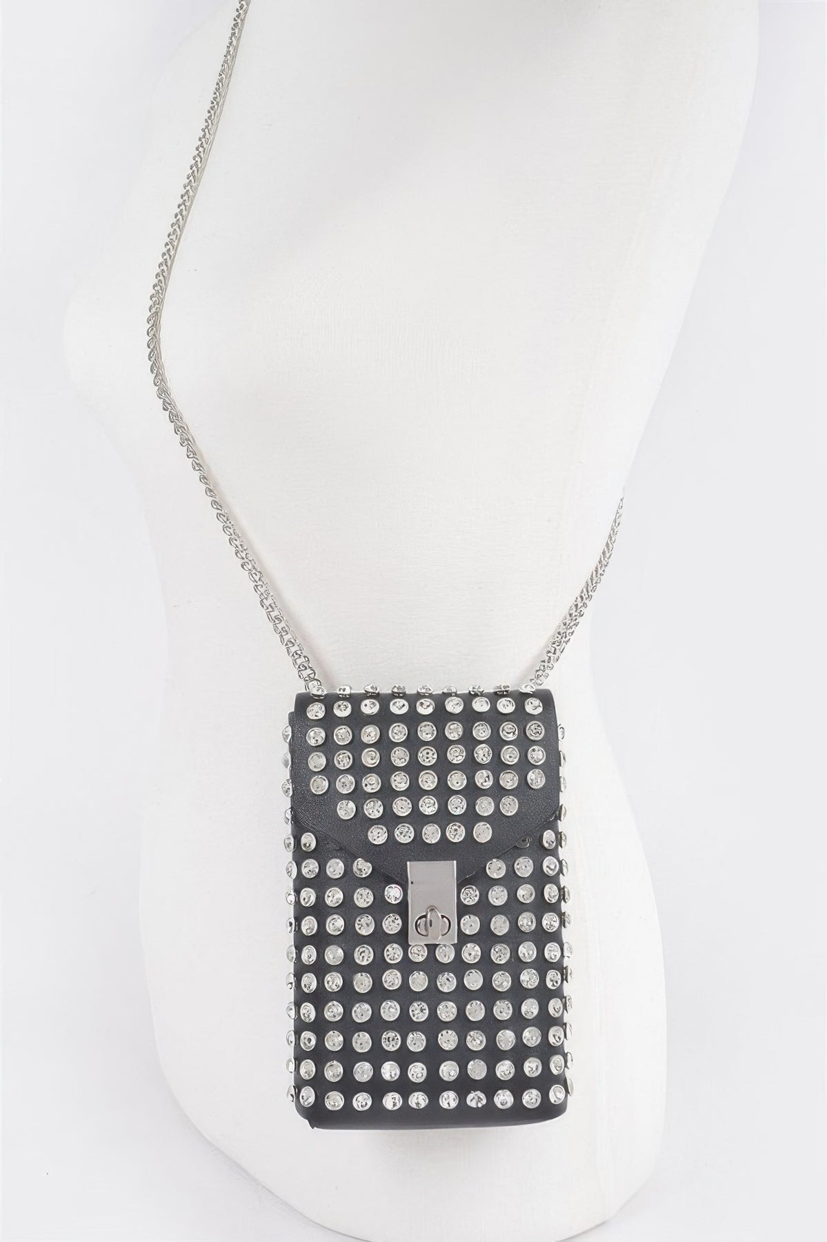 Functional meets fabulous in the Rhinestone Cellphone Crossbody Belt Bag. Designed to keep your essentials close and your style on point, this compact accessory sparkles with rhinestone detailing while offering hands-free convenience. The structured shape securely holds your phone, cards, or keys, and the belt-style strap adds a modern twist. Whether worn around the waist or across the body, this piece delivers sparkle, practicality, and on-the-go edge.