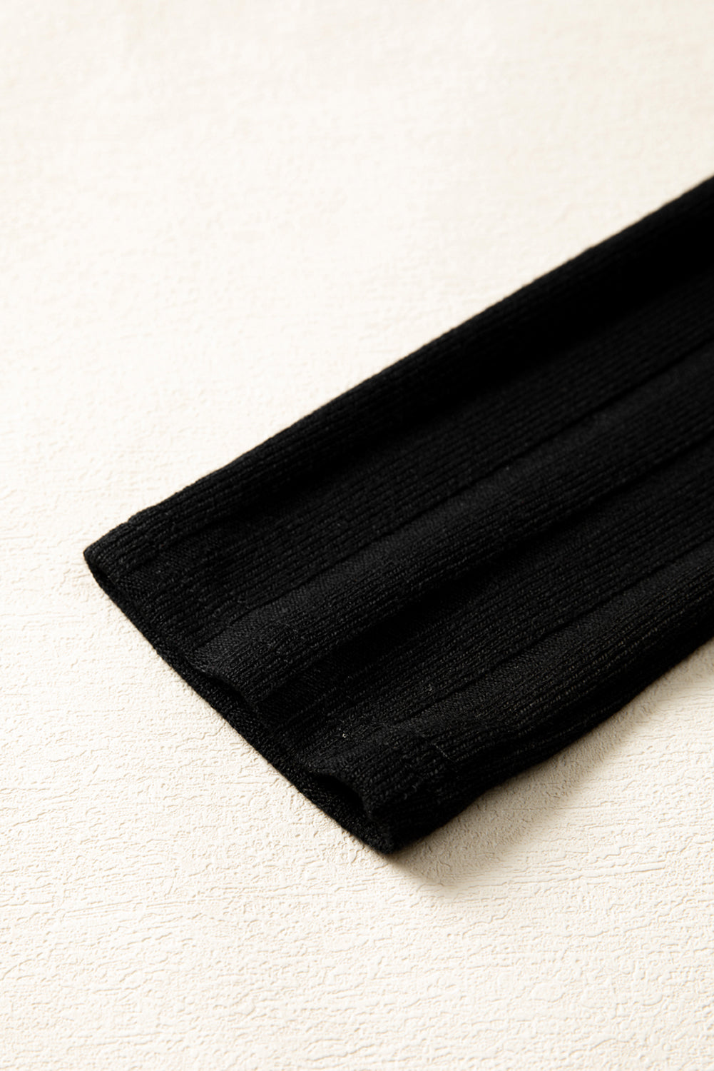 This solid dress features a fit and flare silhouette. It features a ribbed bodice patchwork. The frilled neck is elegant and stylish. The pleated high waist enhances a curvaceous figure.