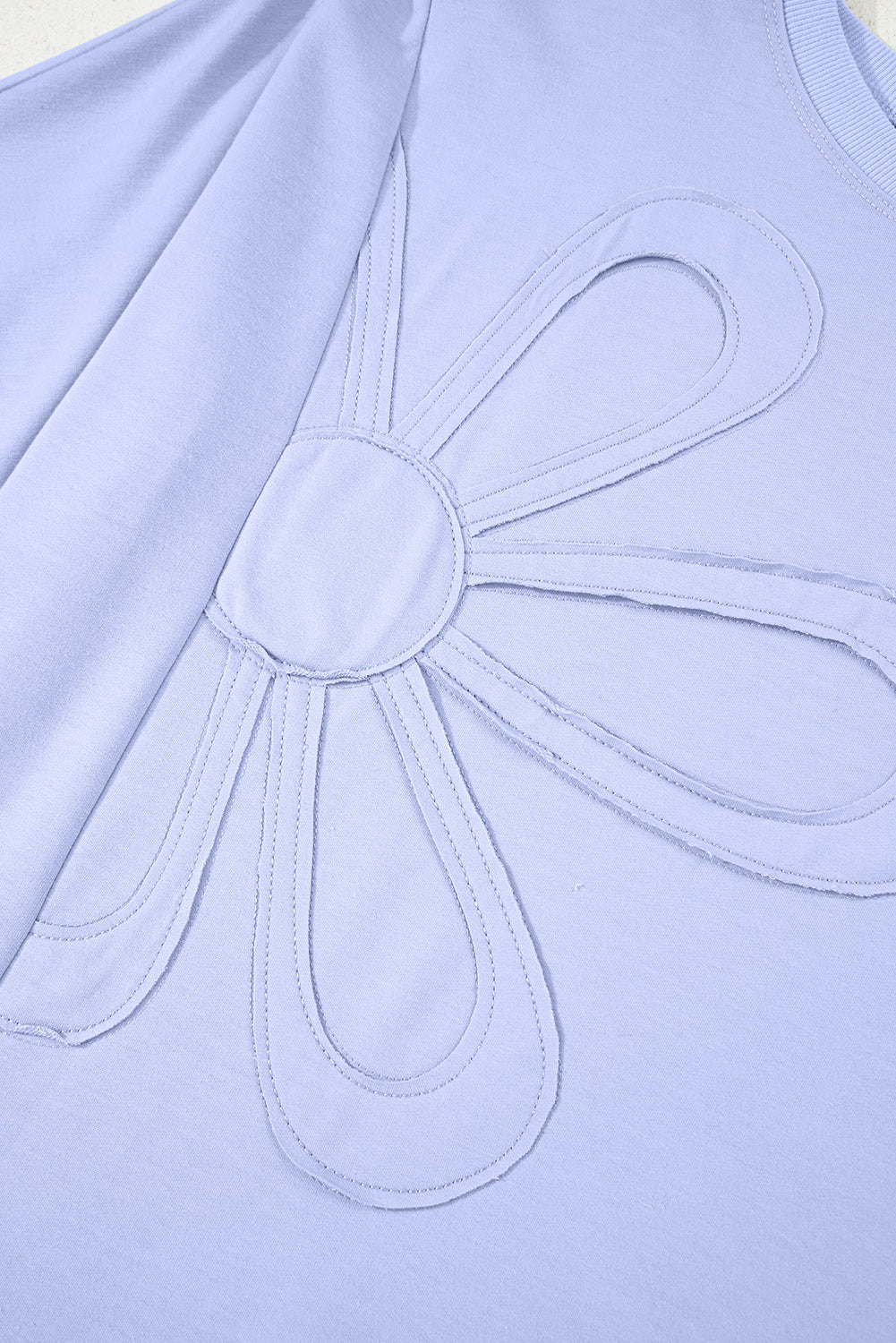 Beau Blue Floral Patched Half Sleeve Tunic Top