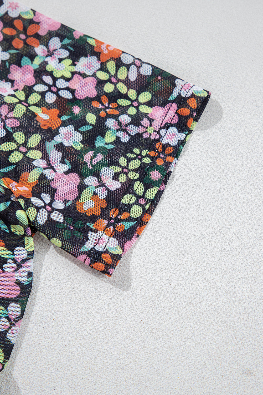 Delicate sheer floral mesh design adds a touch of elegance. Round neck style offers a classic and versatile look. Lightweight and breathable fabric for all-day comfort. Perfect for layering or wearing on its own.