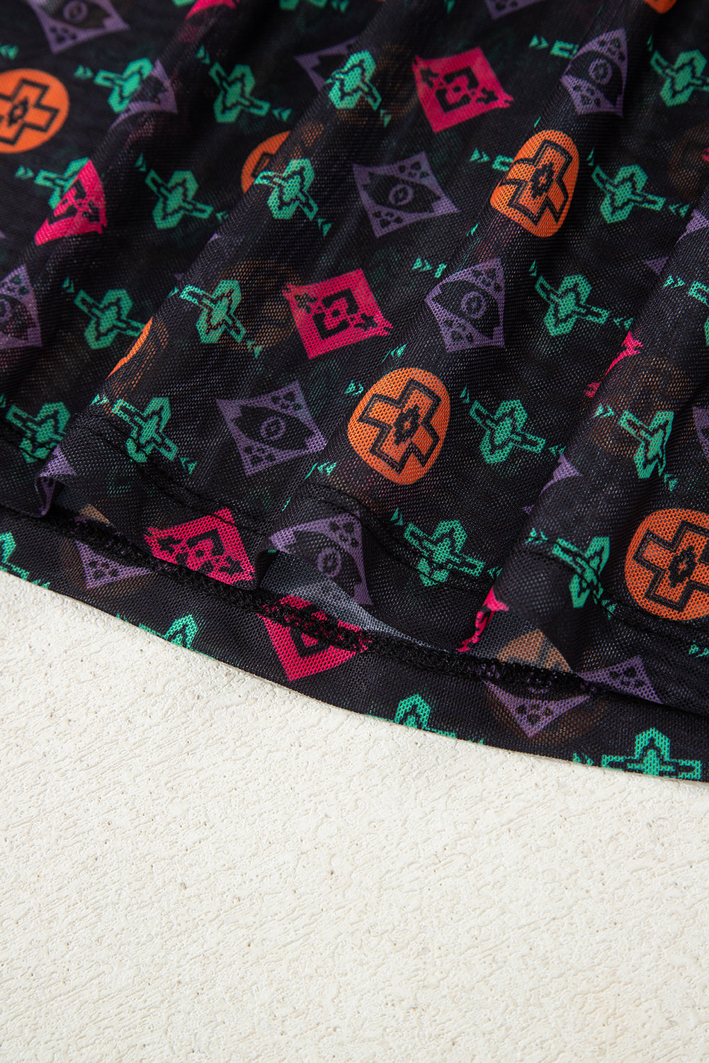 Black Western Aztec Printed Long Sleeve Mesh Top