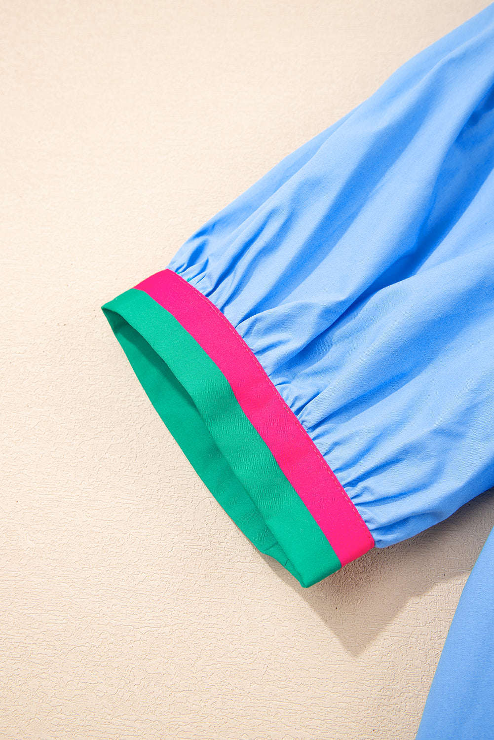Chic contrast striped design add a pop of color. Both the V-neckline and puff sleeves are flattering and elegant. This cotton blouse is breathable and comfy. Suitable for both casual and dressy occasions.