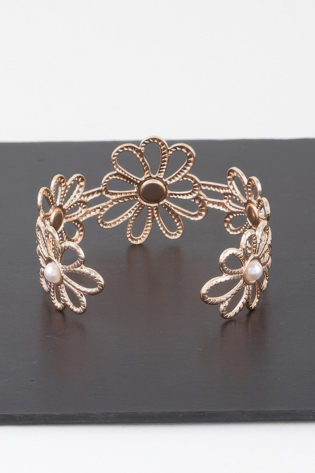 Pearled Flower Cuff Bracelet