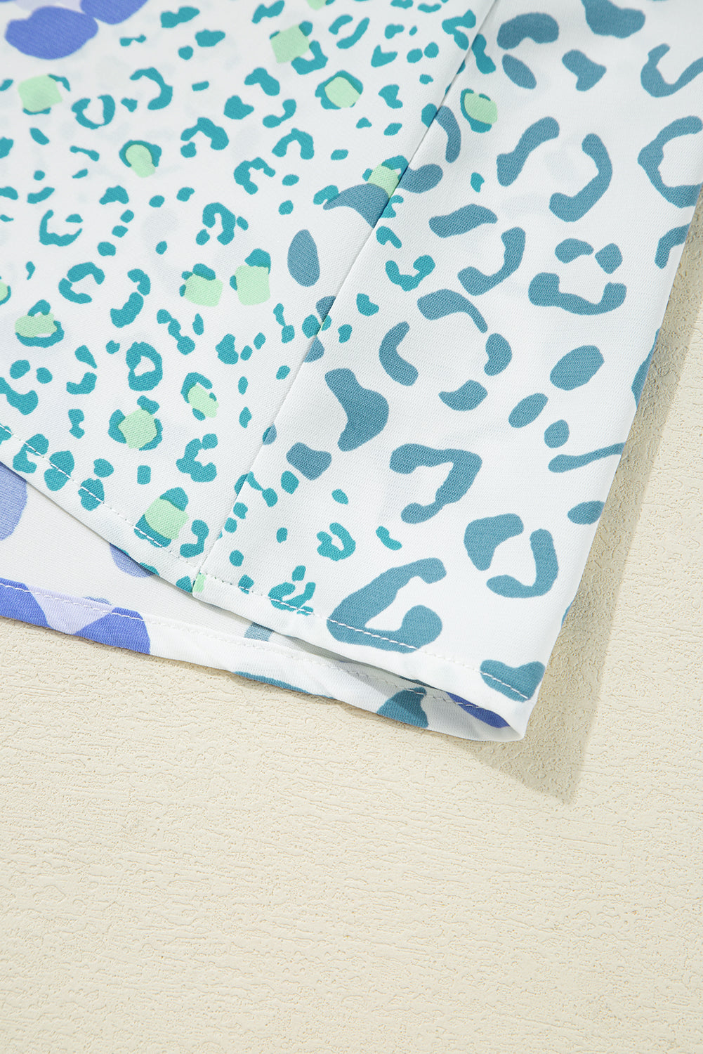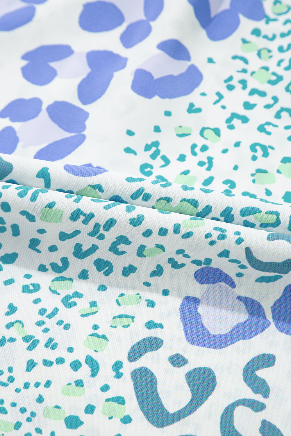 Sky Blue Leopard Contrast Bow Puff Sleeve Mini Dress