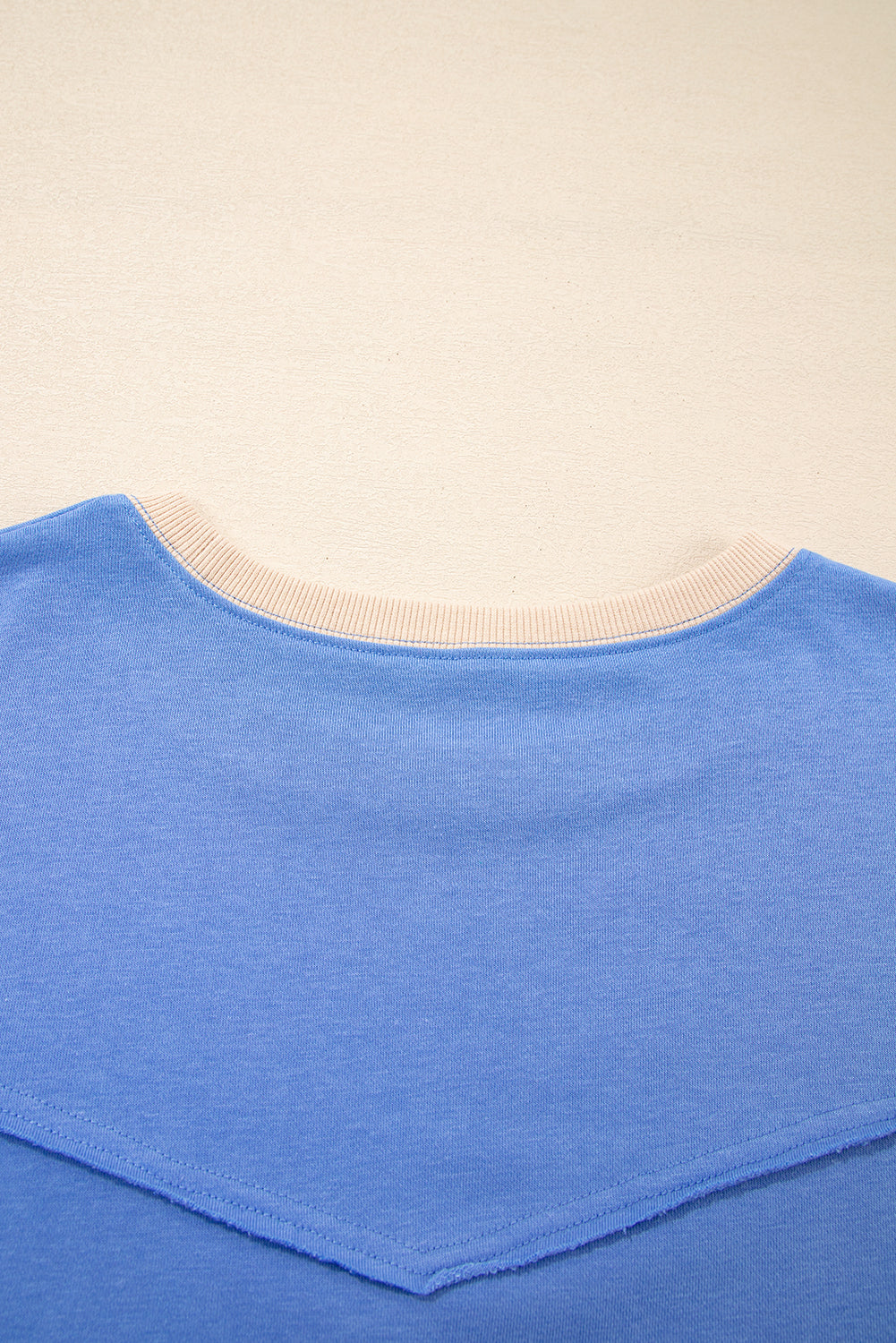 Experience comfort and style with this plus size top. This is a relaxed long sleeve top for women. Features a mixed floral patchwork design at sleeves. It has a round neck, raw seam details, and oversize fit.