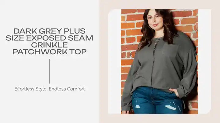 Dark Grey Plus Size Exposed Seam Crinkle Patchwork Top by@Outfy