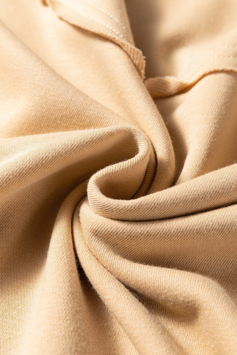 It has a round neck, raw seam details, and oversize fit.