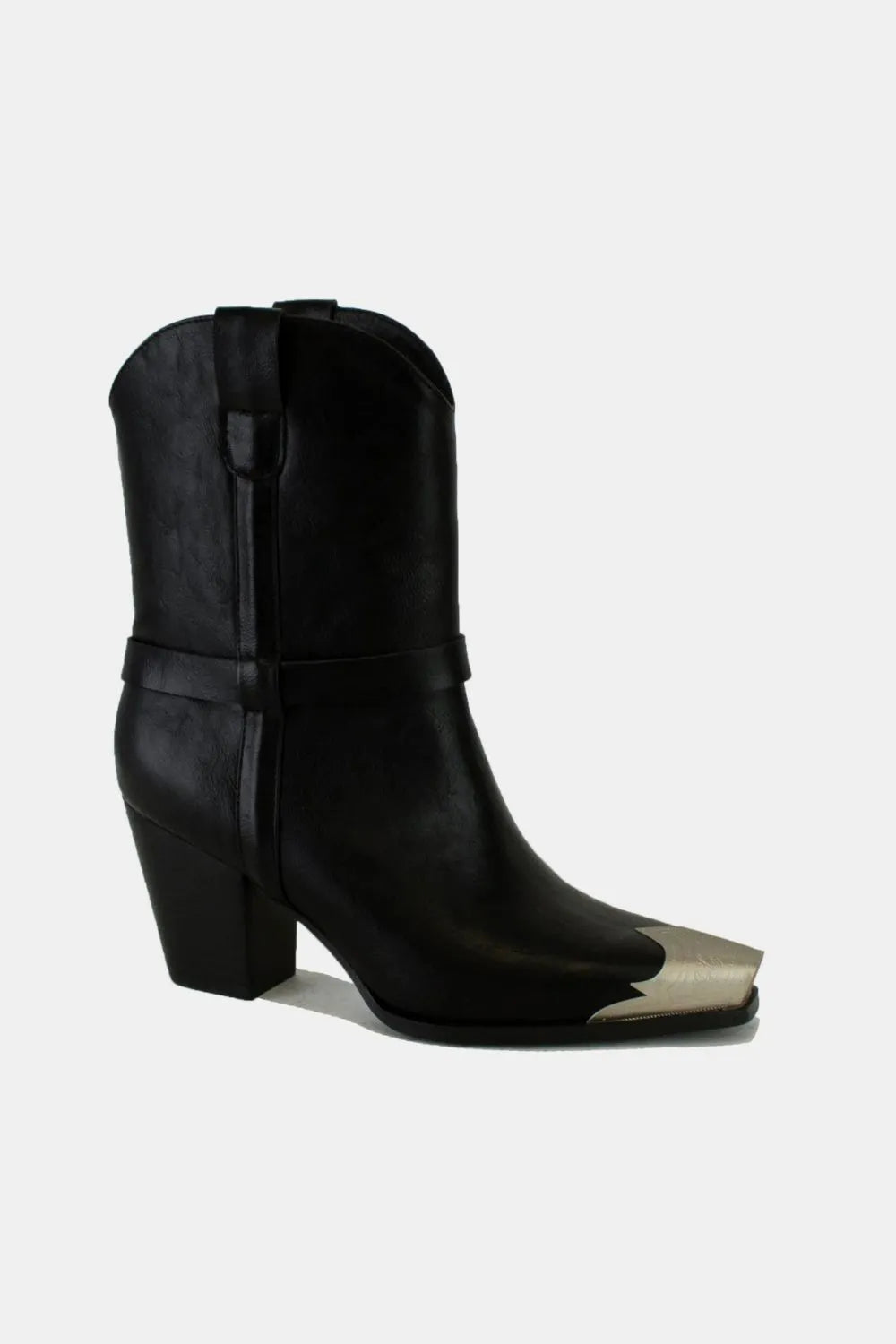 Beast Fashion Faux Leather Metal Toe Ankle Boots