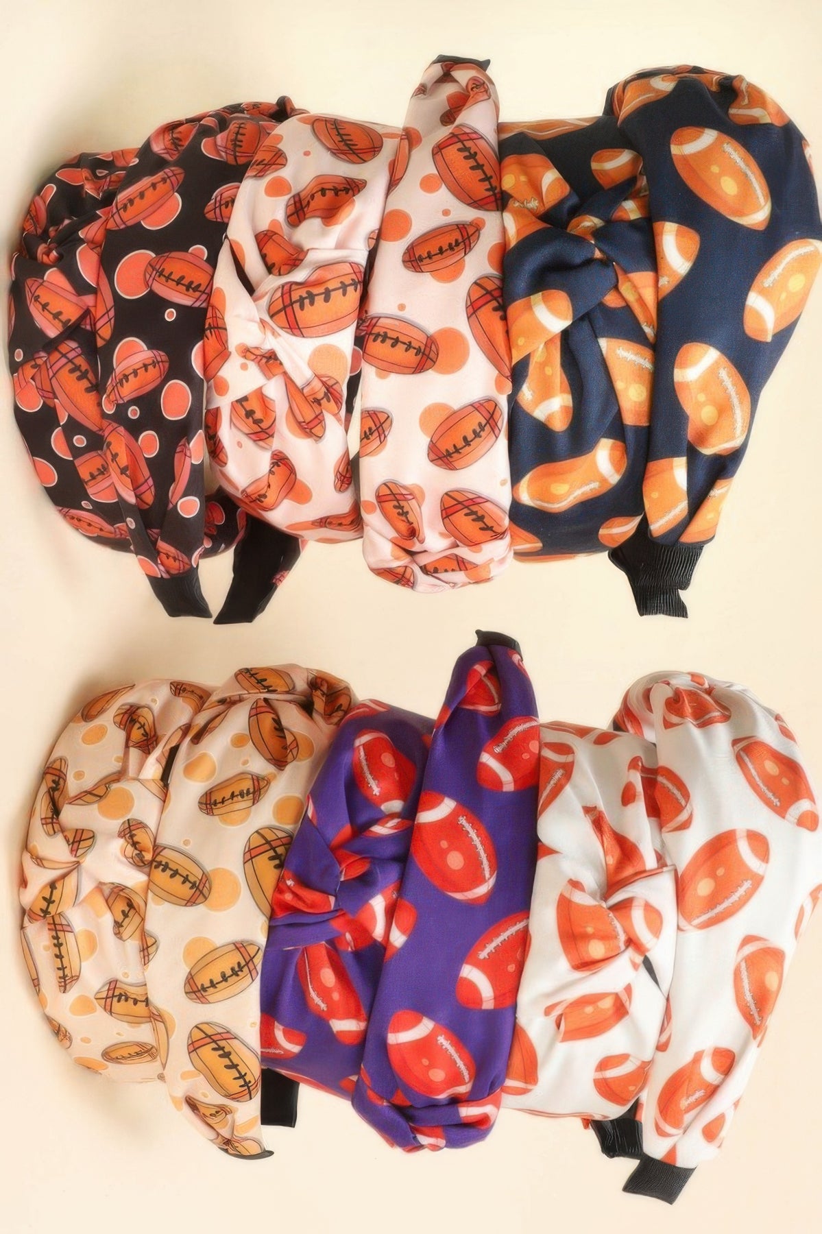 Get ready for game day in bulk with the 12-Pack Football Theme Top Knotted Headbands. Featuring six assorted graphic print styles, these headbands bring energy and fan spirit to every outing. Made with soft, breathable fabric, they offer flexible comfort and a secure grip that lasts all day. The wide band design and top knot detail provide both style and function, making them a favorite for team moms, athletes, and fans alike. Perfect for schools, clubs, and sporting events, this set ensures everyone can share the excitement.