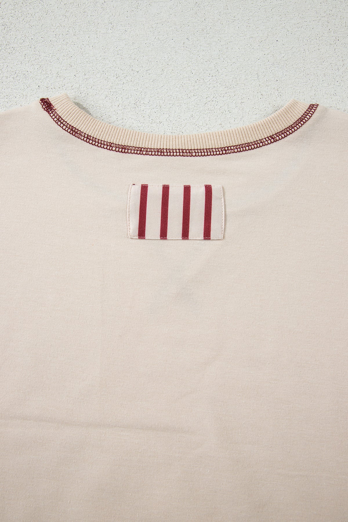 Red Stripe Sleeve Patchwork Casual Knit Top