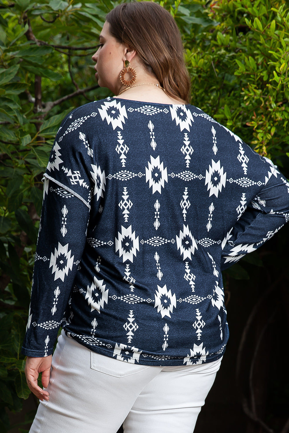 黑綠色加大尺寸刺繡V領垂袖襯衫