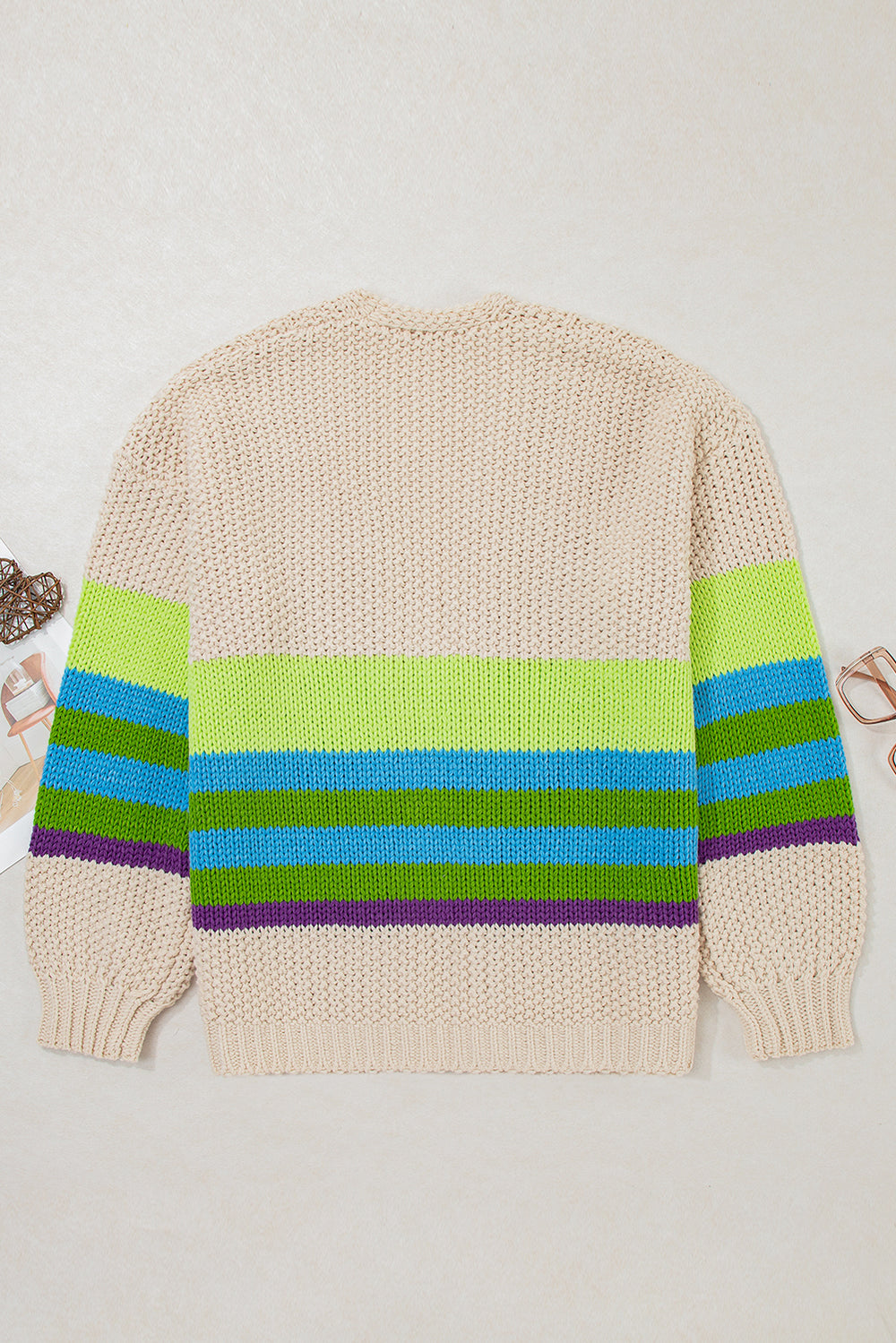 Blue Stripe Color Block PLus Size Drop Shoulder Sweater