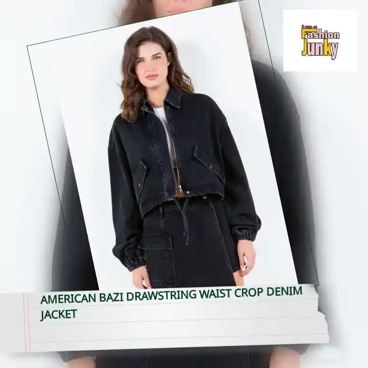 American Bazi Drawstring Waist Crop Denim Jacket by@Outfy
